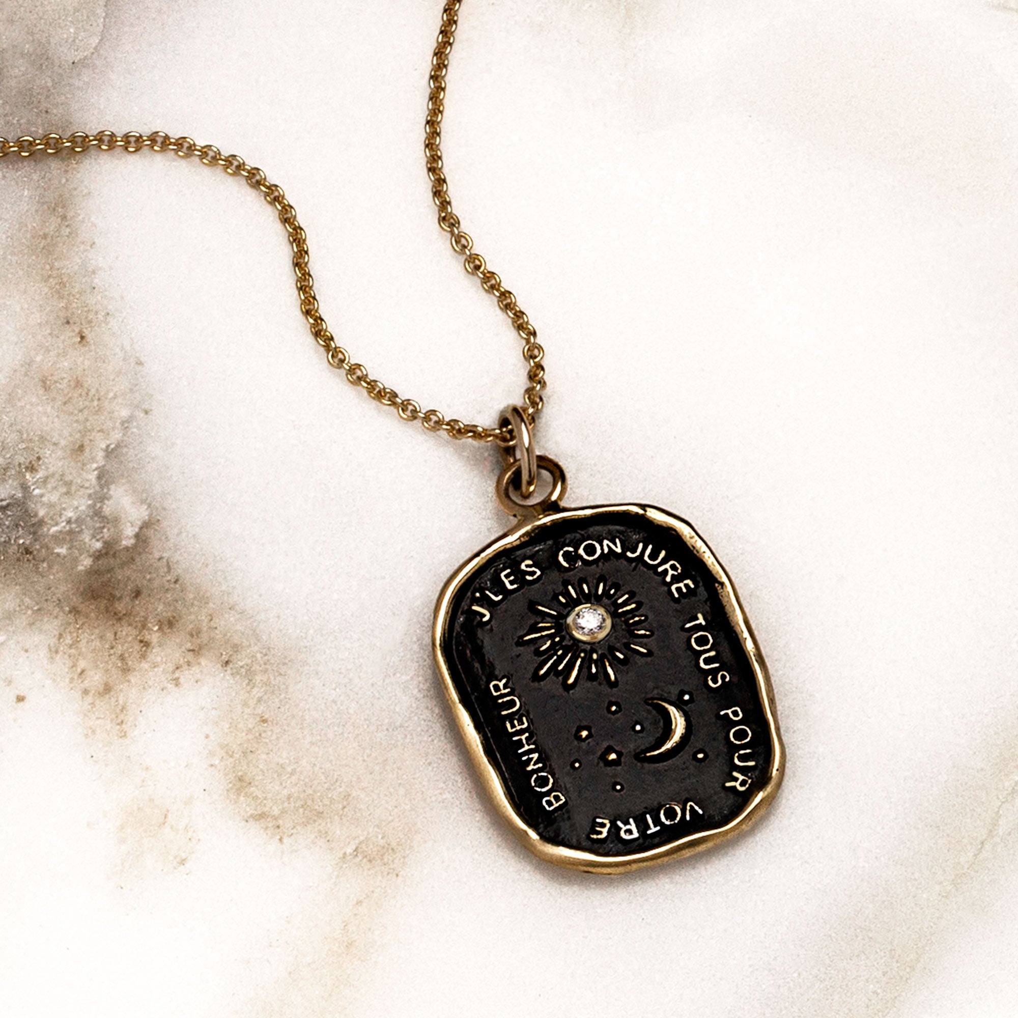 Trust the Universe 14K Gold Diamond Set Signature Talisman