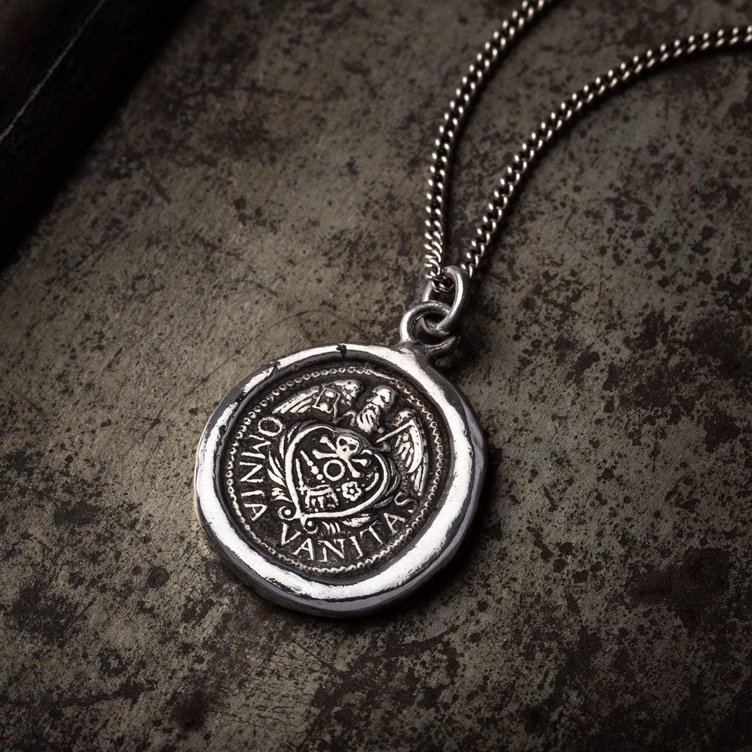 This talisman reads 'Omnia Vanitas' in Latin, meaning 'All is Vanity.' Featuring Chronos, the God of Time, it encourages us to focus on what truly matters—love, connection, and the meaningful experiences that endure beyond the material world.