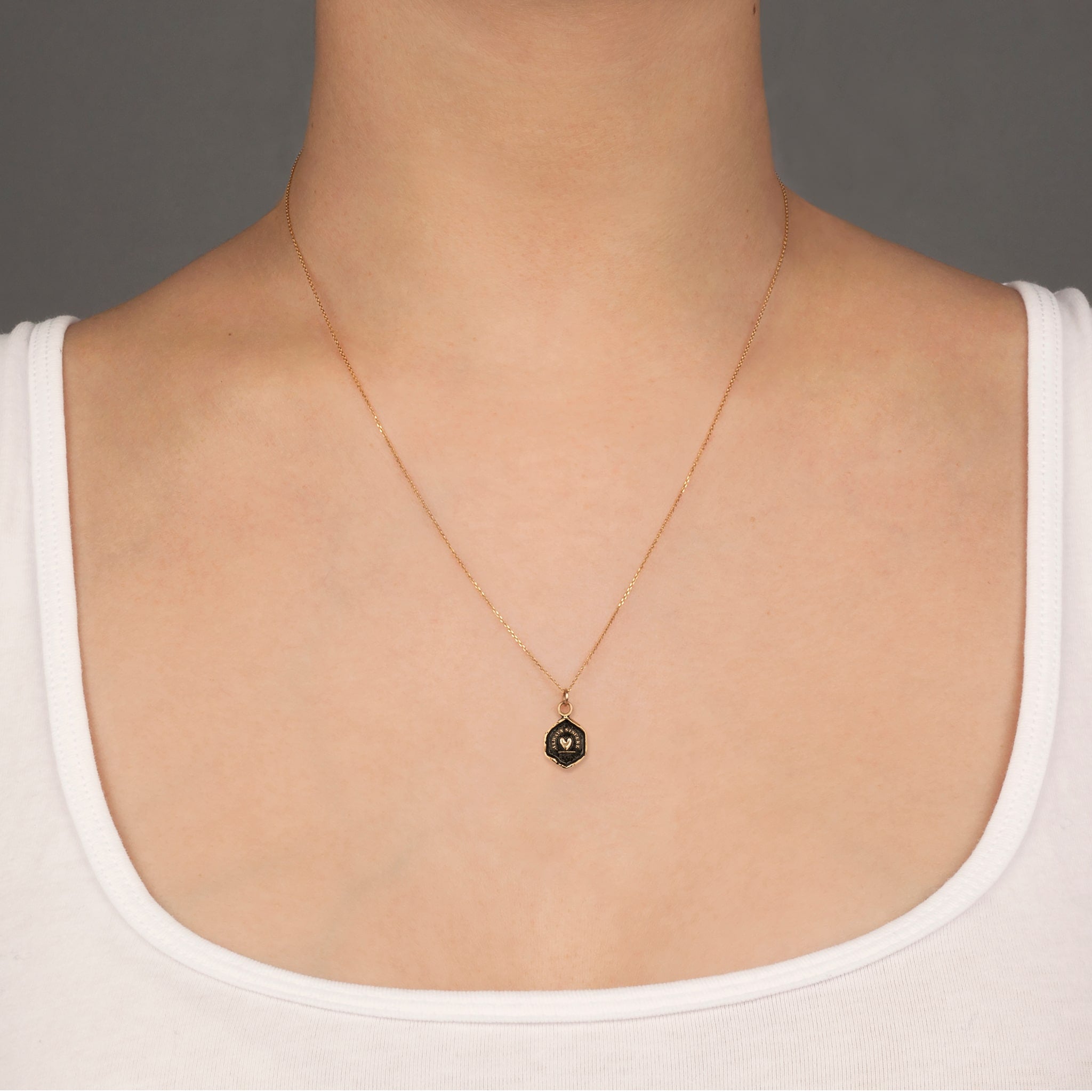 - 14k gold talisman available with or without a 14k gold or black sterling silver chain