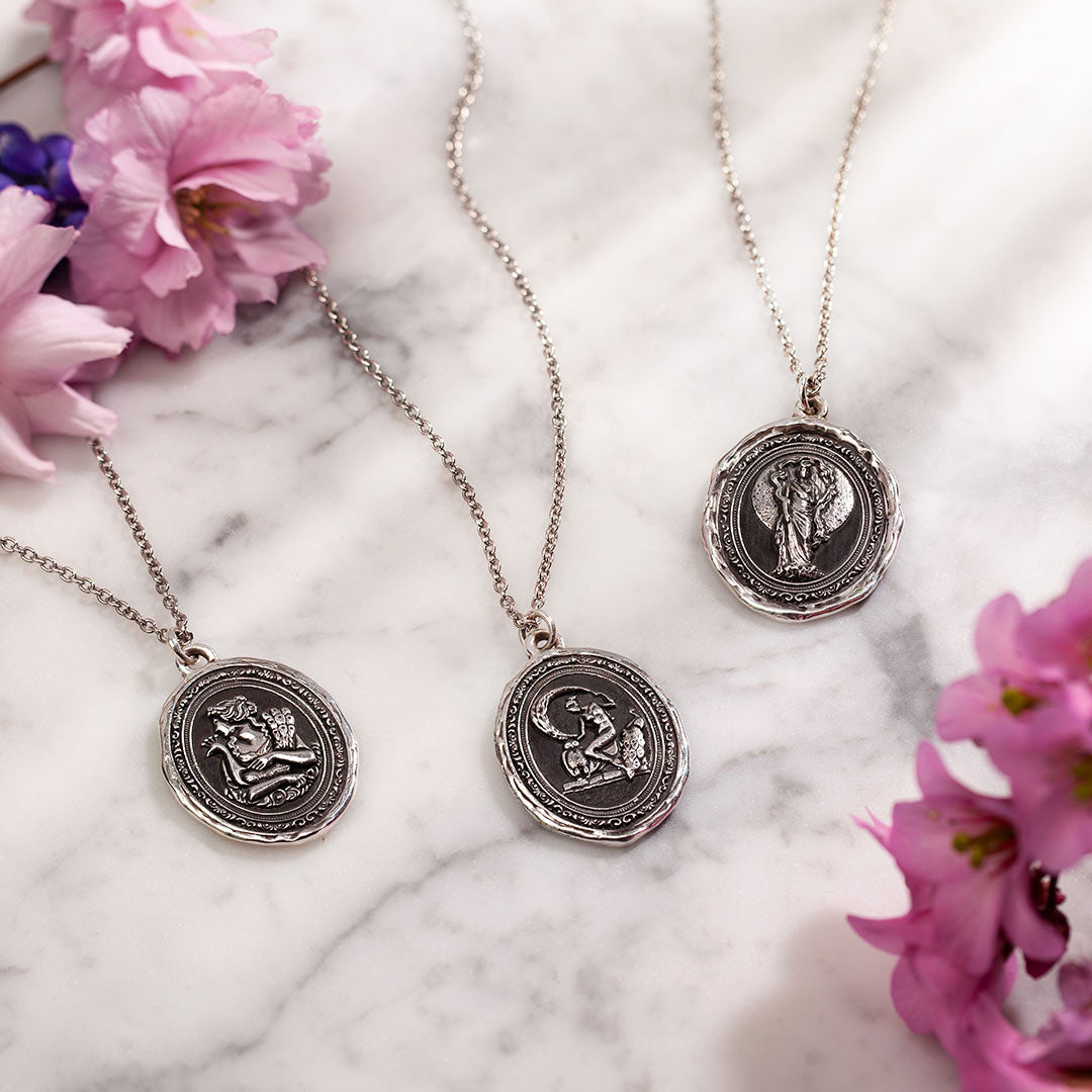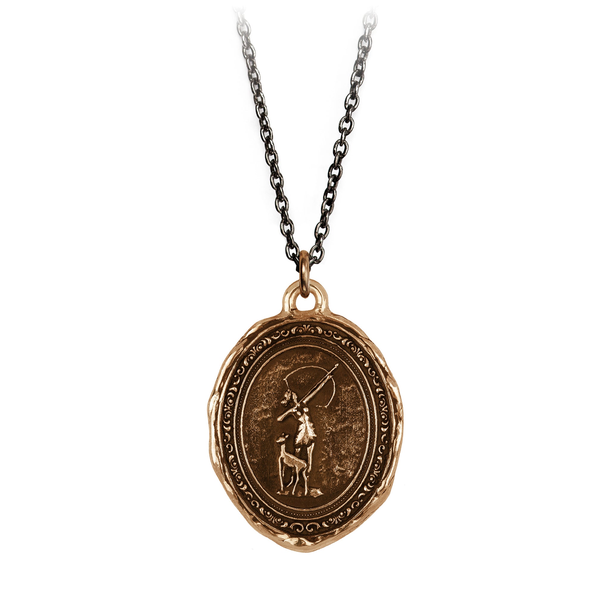 - Sterling silver or bronze talisman on a sterling silver chain