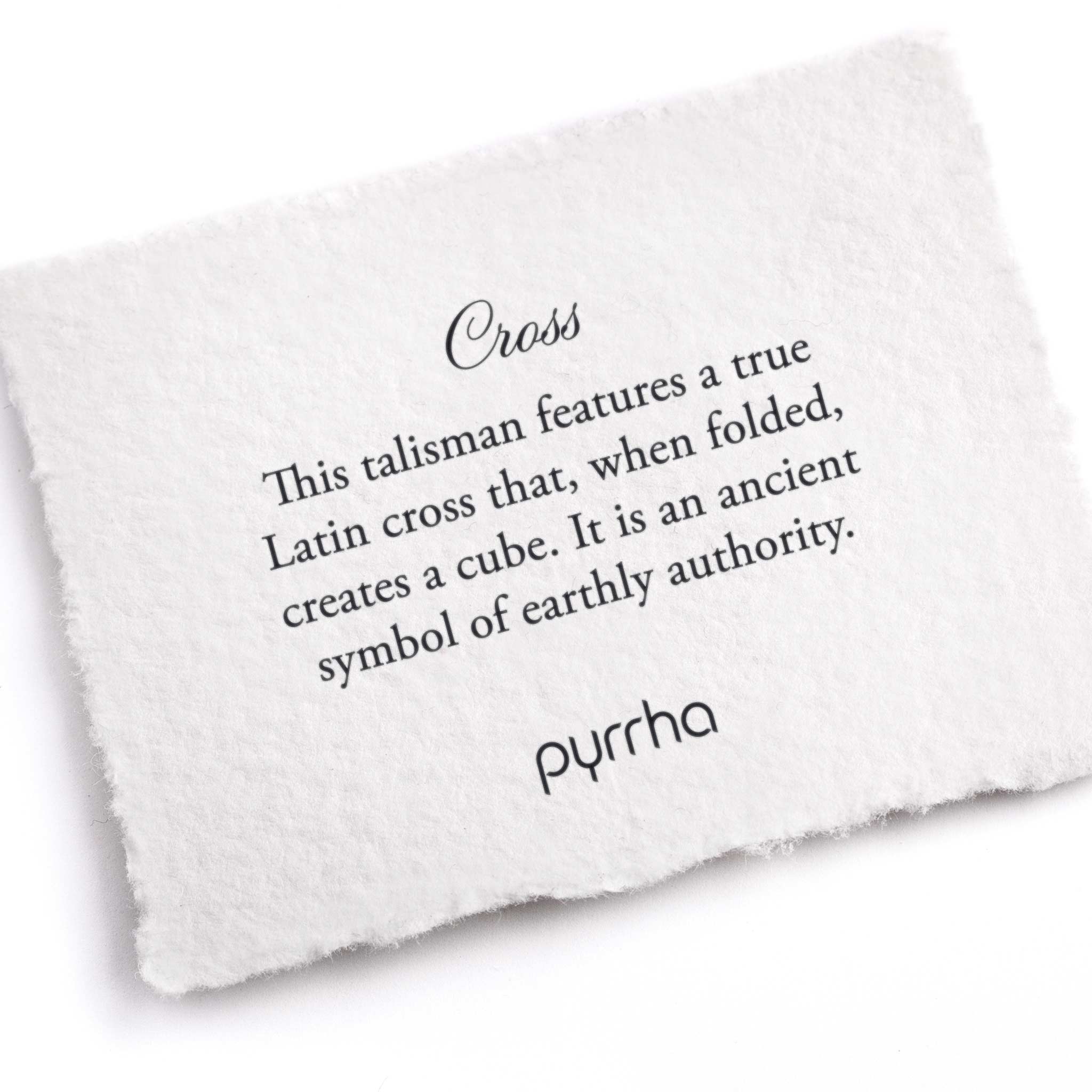 This talisman features a true Latin cross that, when folded, creates a cube. It is an ancient symbol of earthly authority.