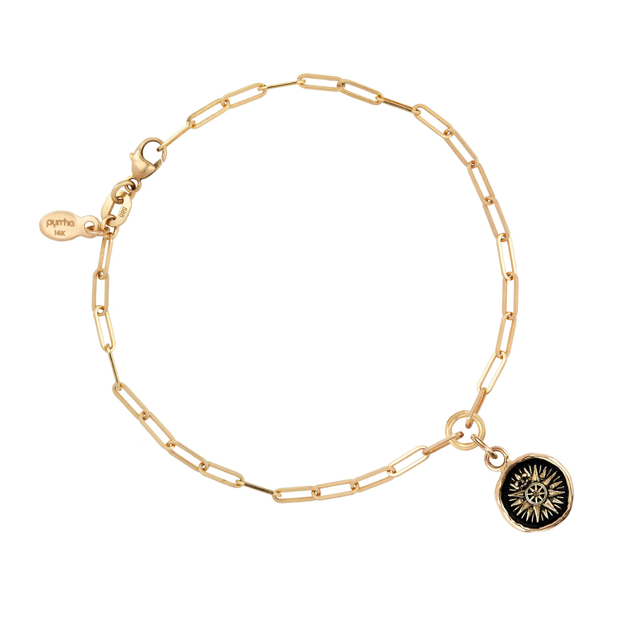 - Fastens with a 14k gold lobster clasp with a 14k gold Pyrrha branded quality tag