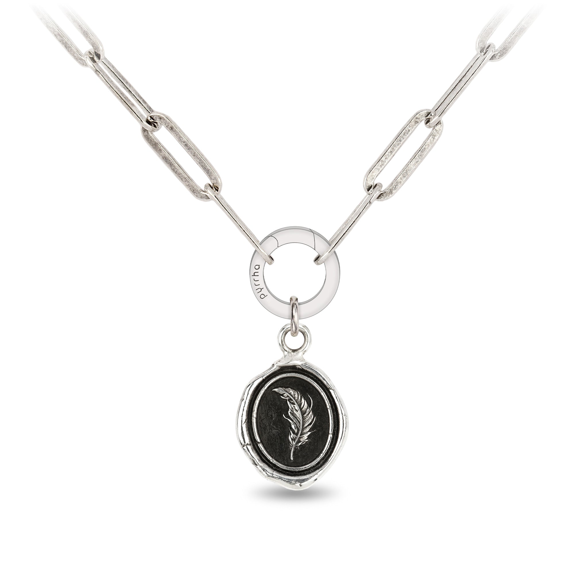 An emblem of lightness and freedom, the feather on this talisman represents the ability to rise above challenges and soar to new heights.
