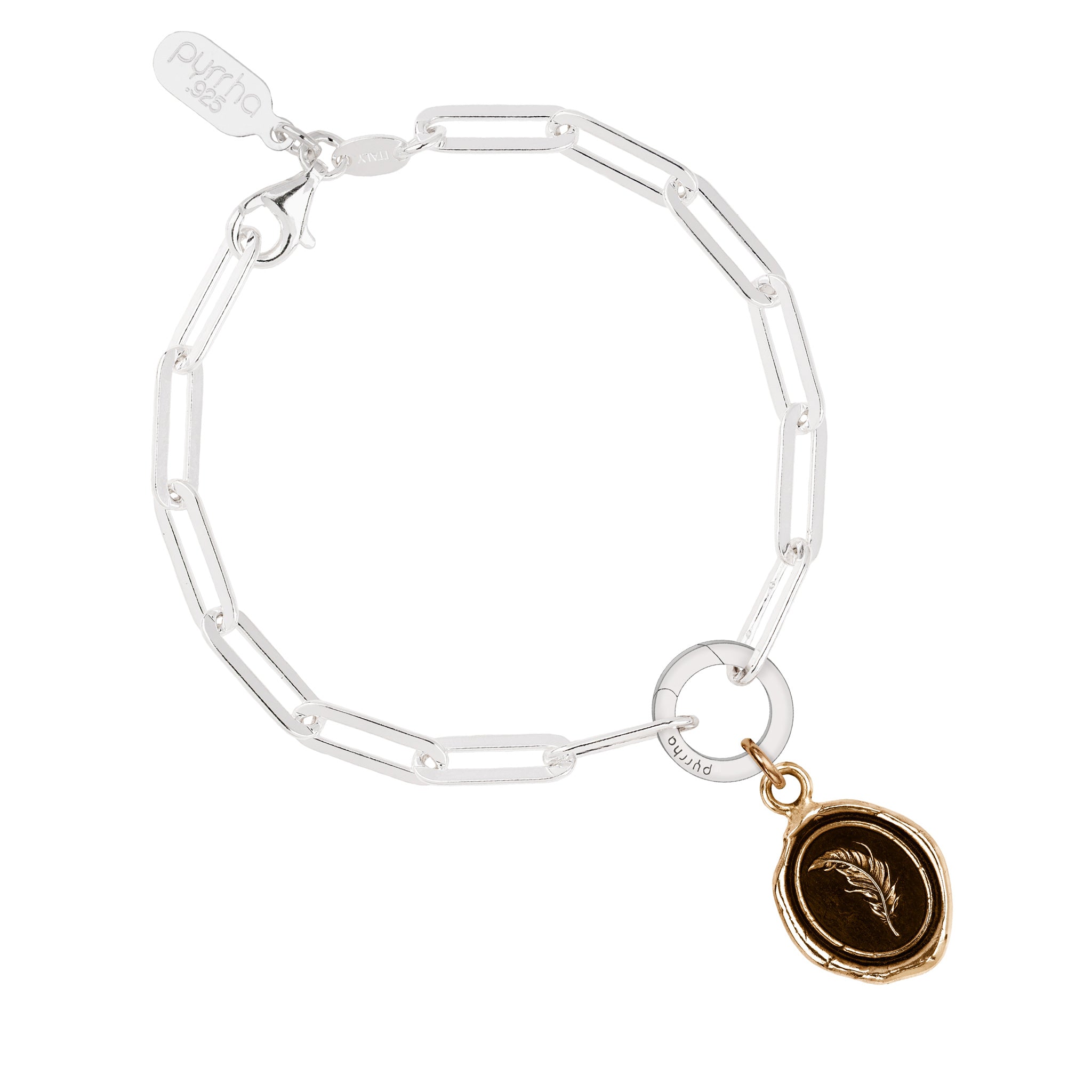 - Fastens with a sterling silver lobster clasp and a sterling silver Pyrrha branded quality tag