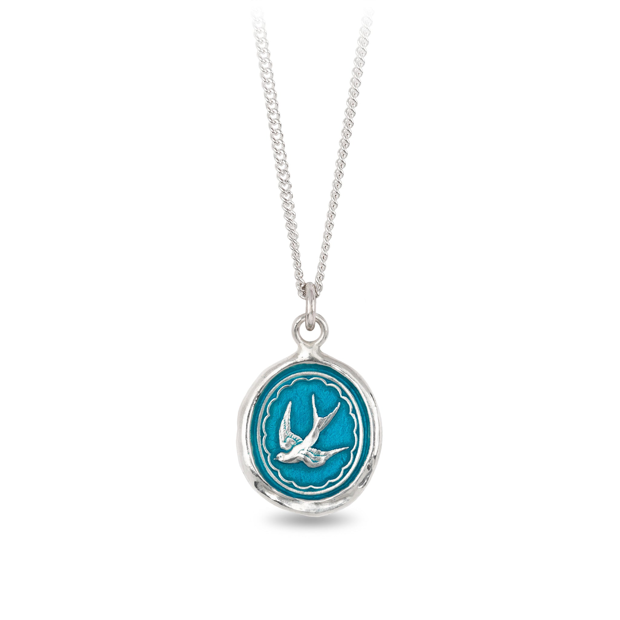The swallow pictured on this talisman is symbolic of a free spirit, unfettered by social conventions. It is a reminder to stay spontaneous and open to new experiences.