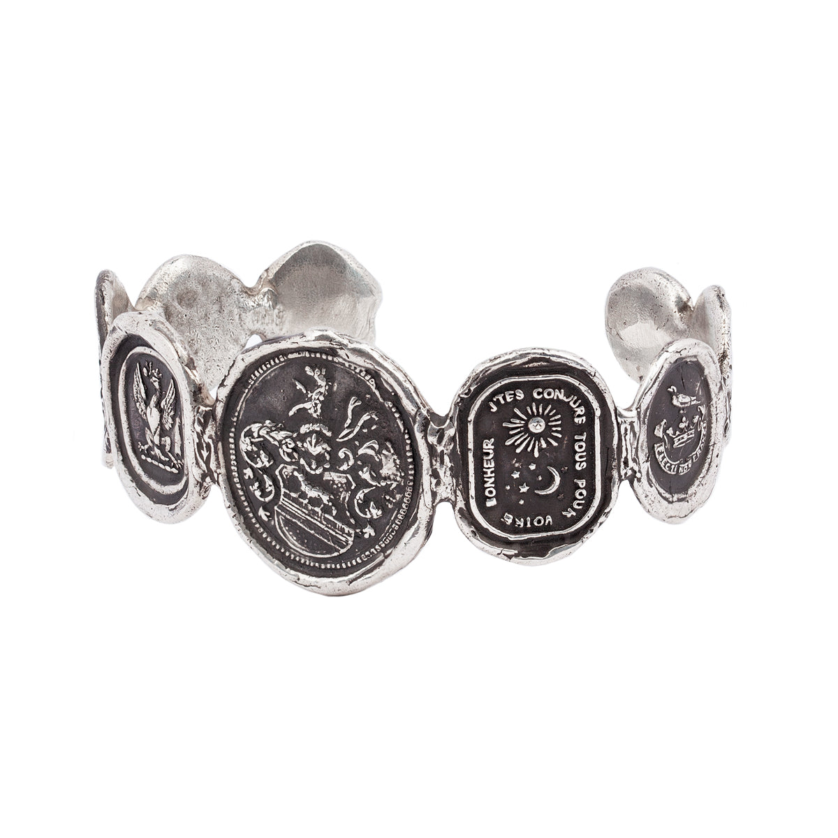 The quintessential Pyrrha collector piece, this bracelet combines multiple talismans into an eye-catching and deeply meaningful cuff.