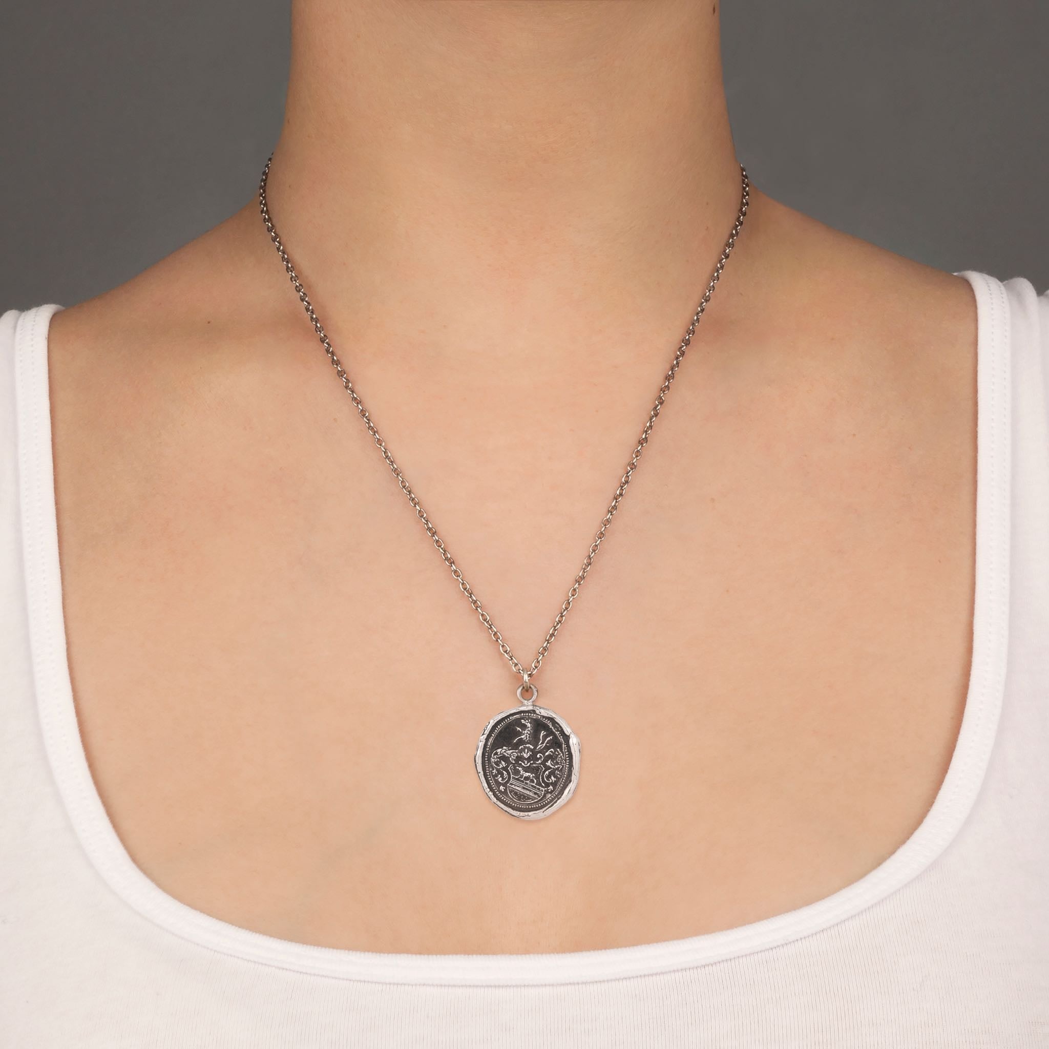 This talisman features a wolf, a feared and misunderstood creature of high intelligence, fierce loyalty, and deep compassion.