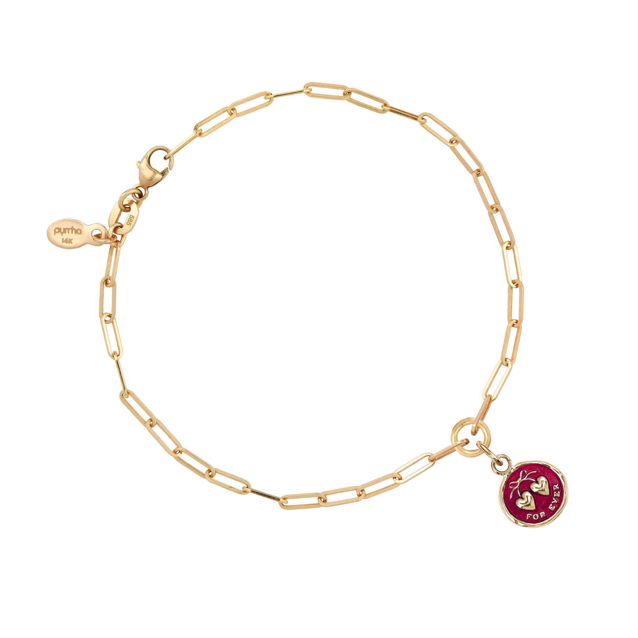 Hearts 14K Gold Long Link Paperclip Chain Bracelet - True Colors