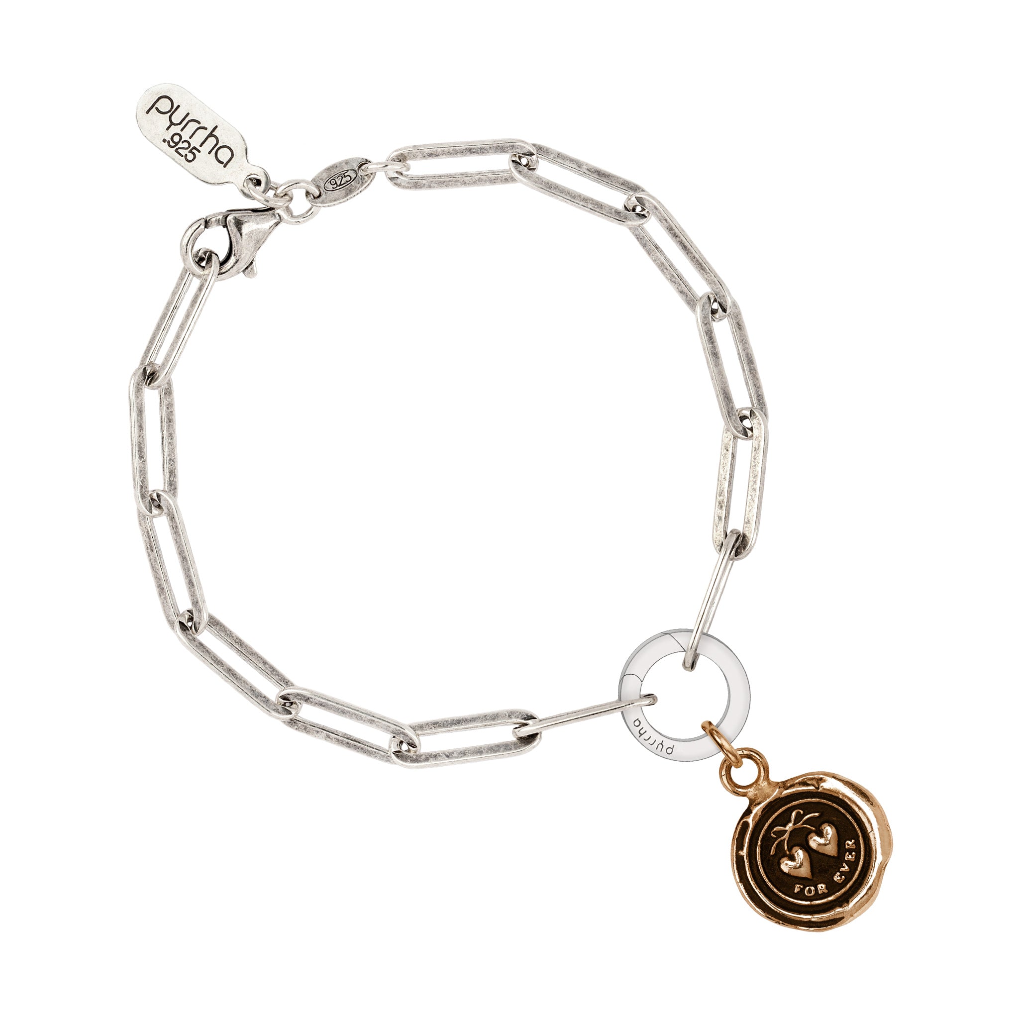This talisman reads 'Forever'. The tied ribbon above the hearts is symbolic of the uniting of two souls.