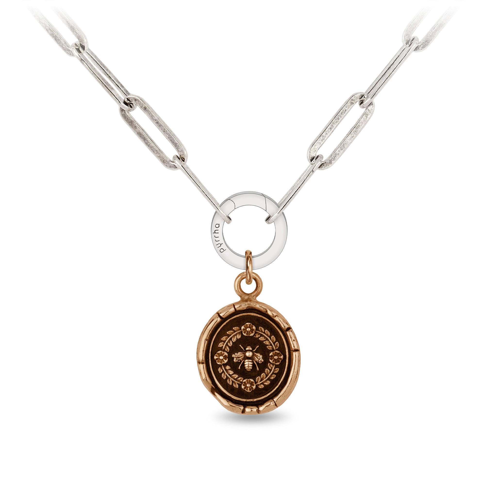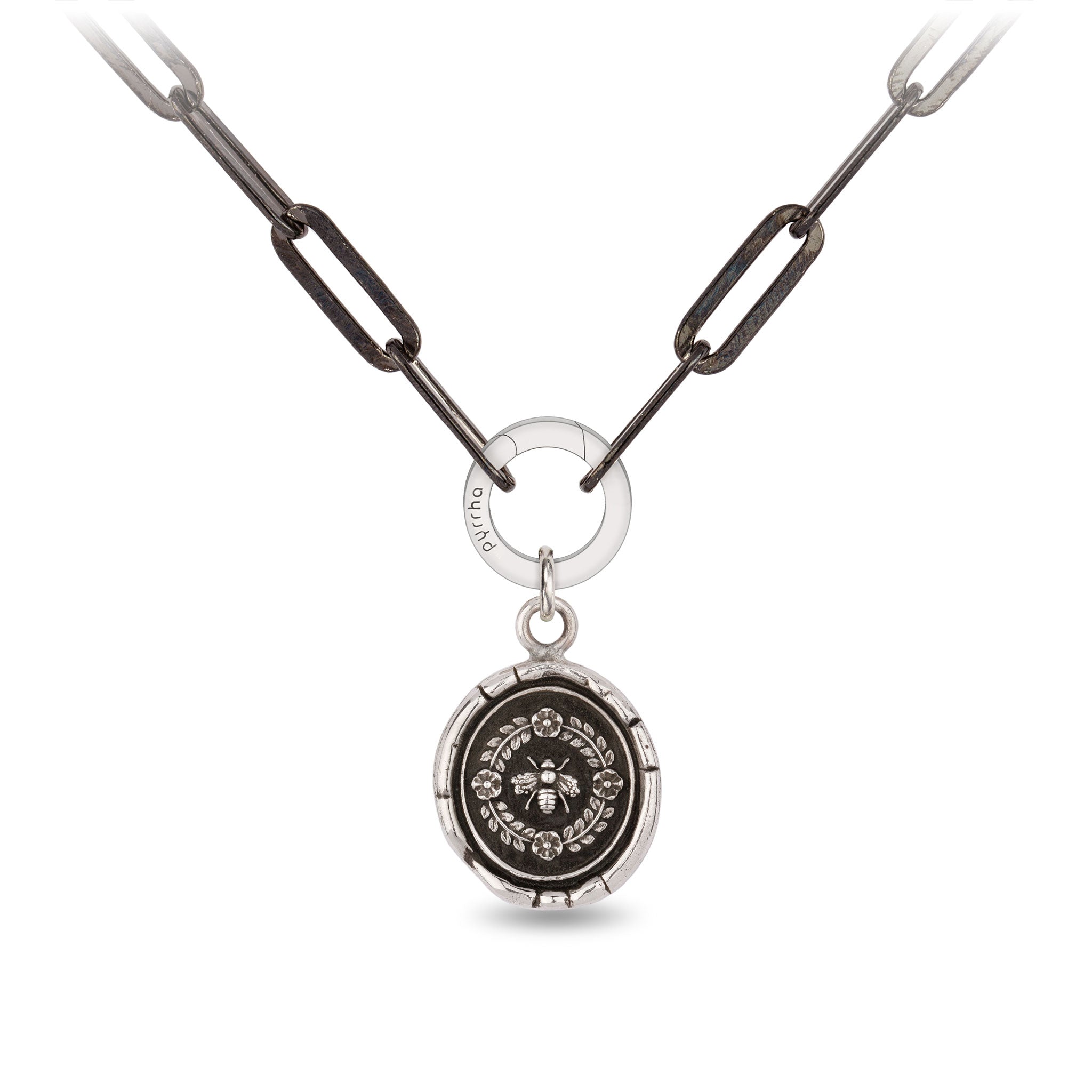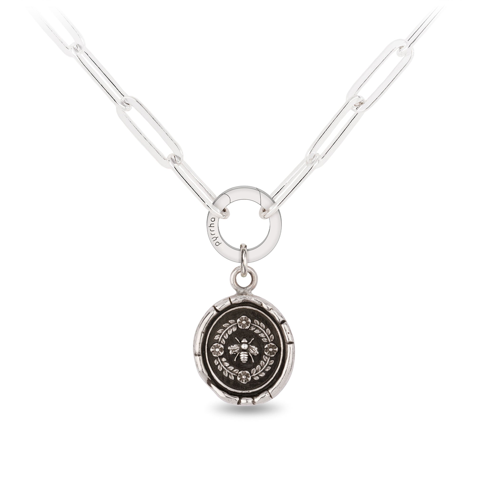 - Fastens with a sterling silver lobster clasp and a sterling silver Pyrrha branded quality tag
