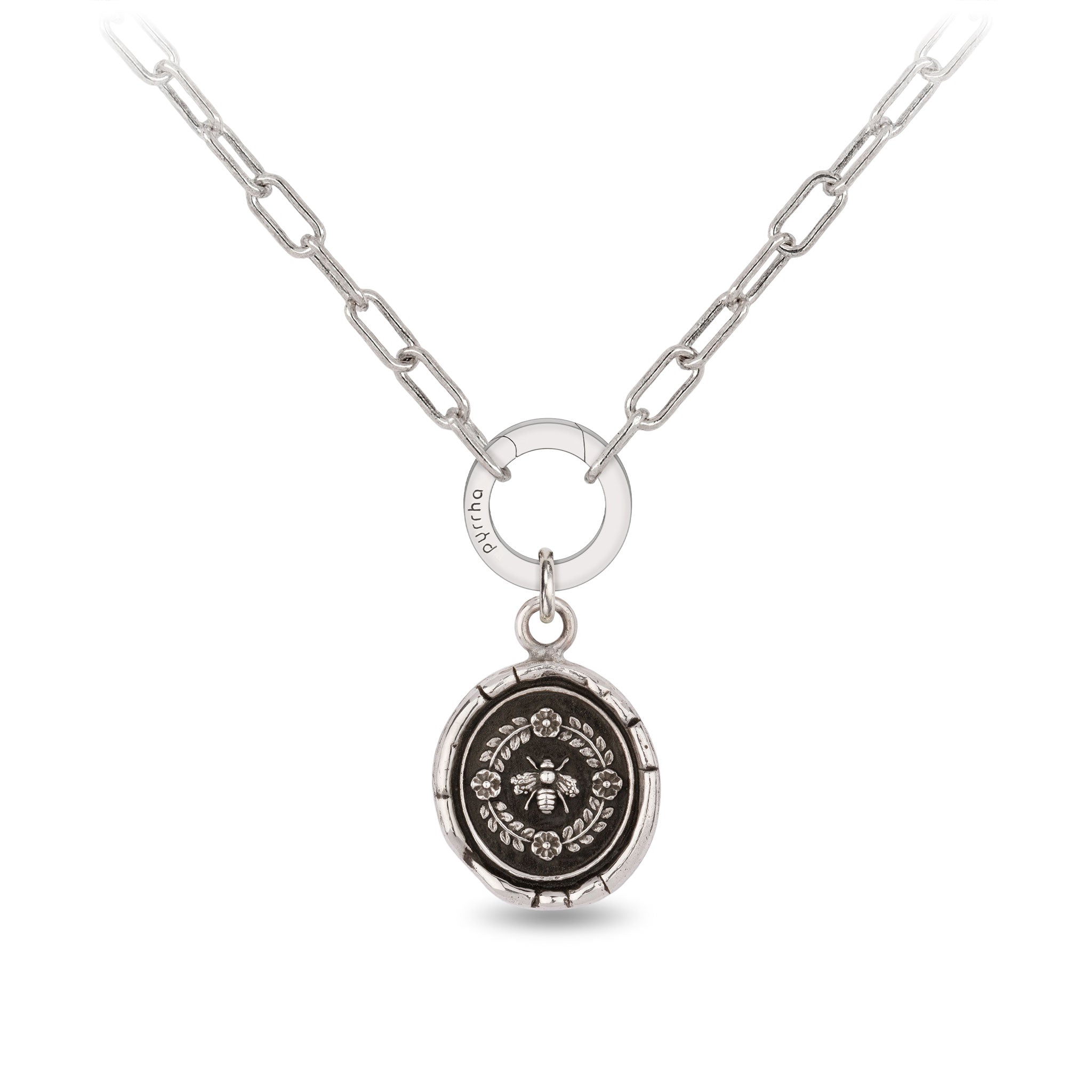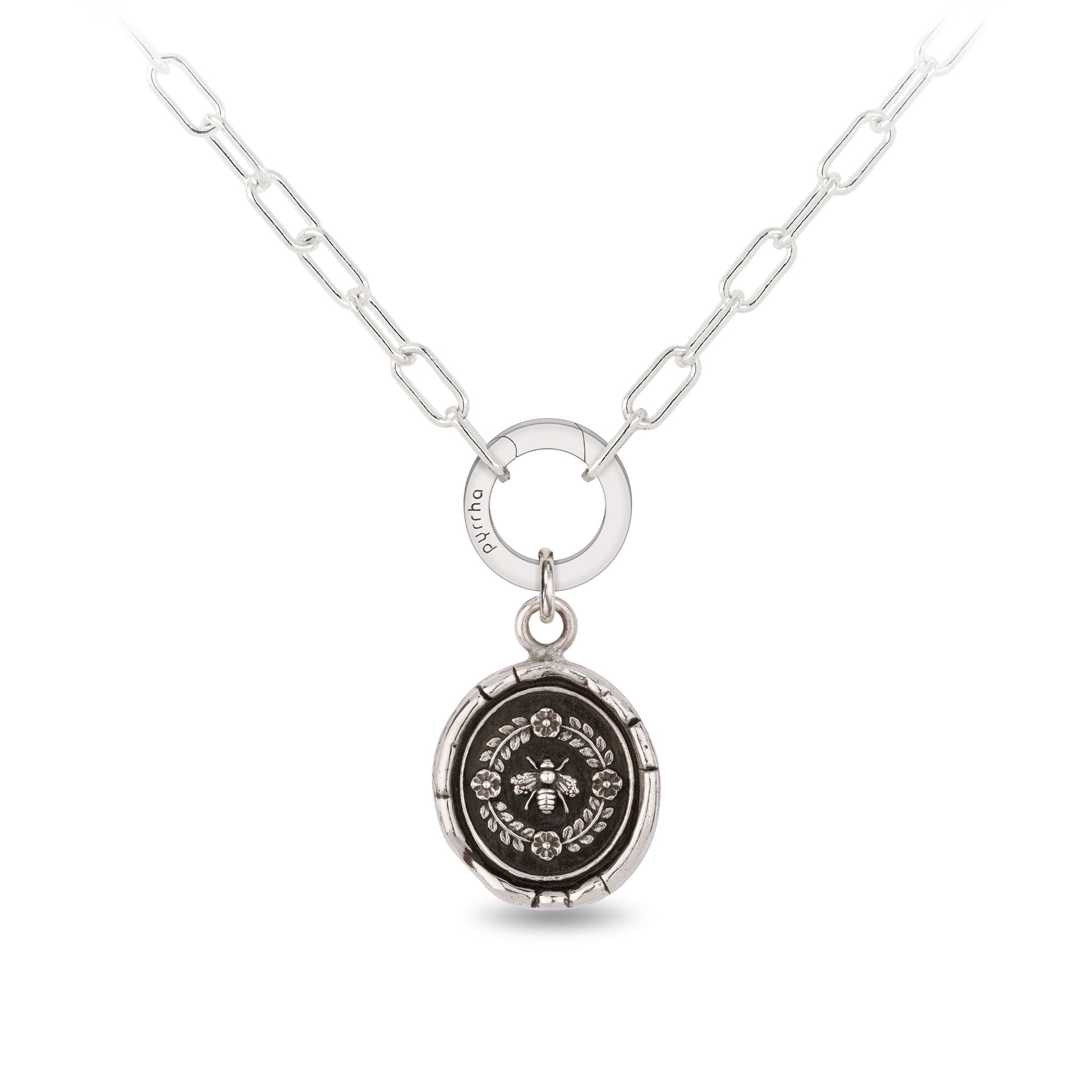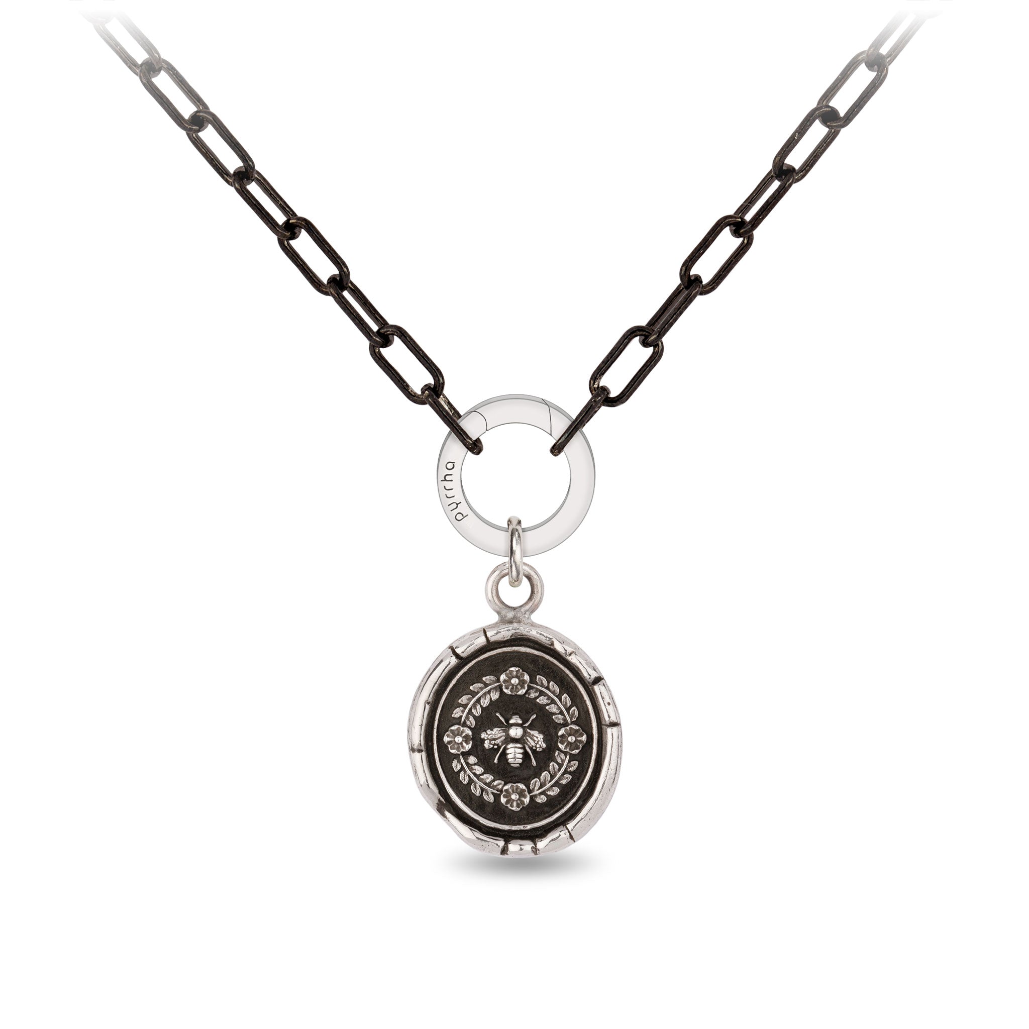 - Sterling silver or bronze talisman on a sterling silver chain with a Talisman clip