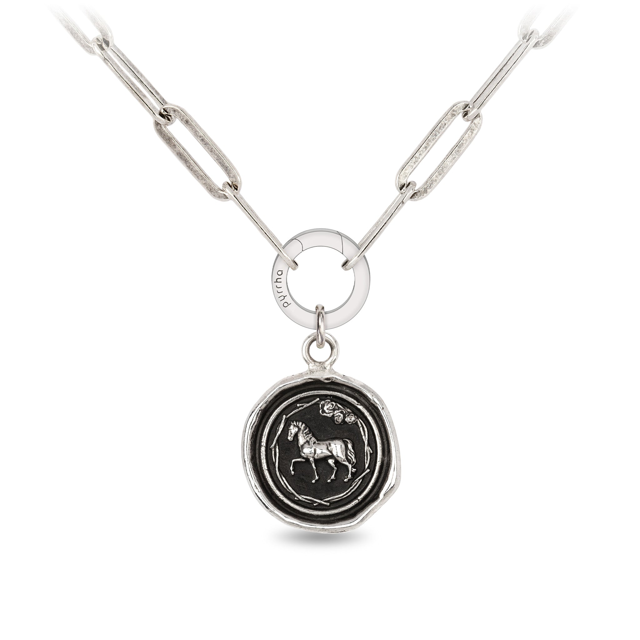 The horse on this talisman is symbolic of strength, freedom, and grace. It encourages the wearer to harness their inner power and embrace their independence.