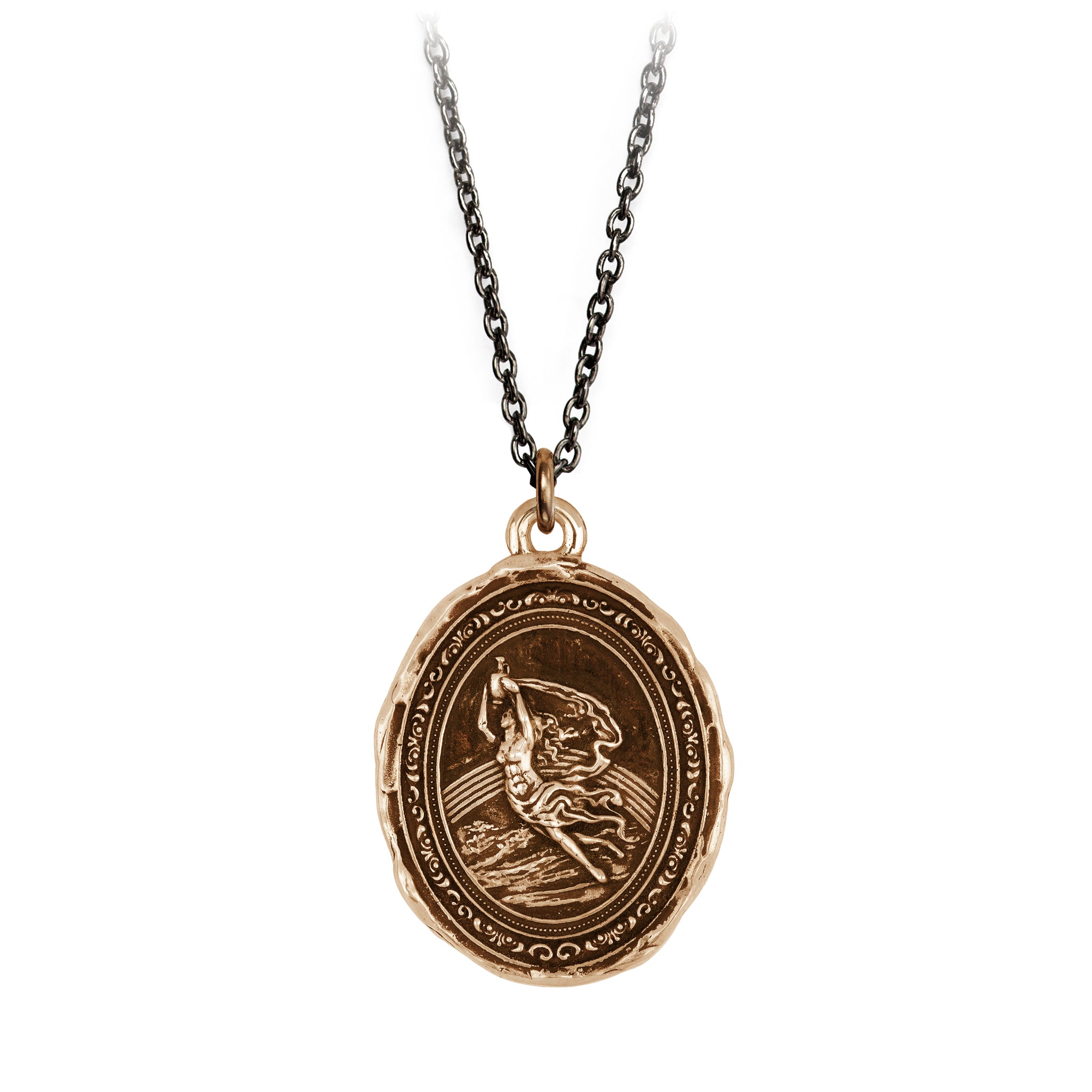 - Sterling silver or bronze talisman on a sterling silver chain