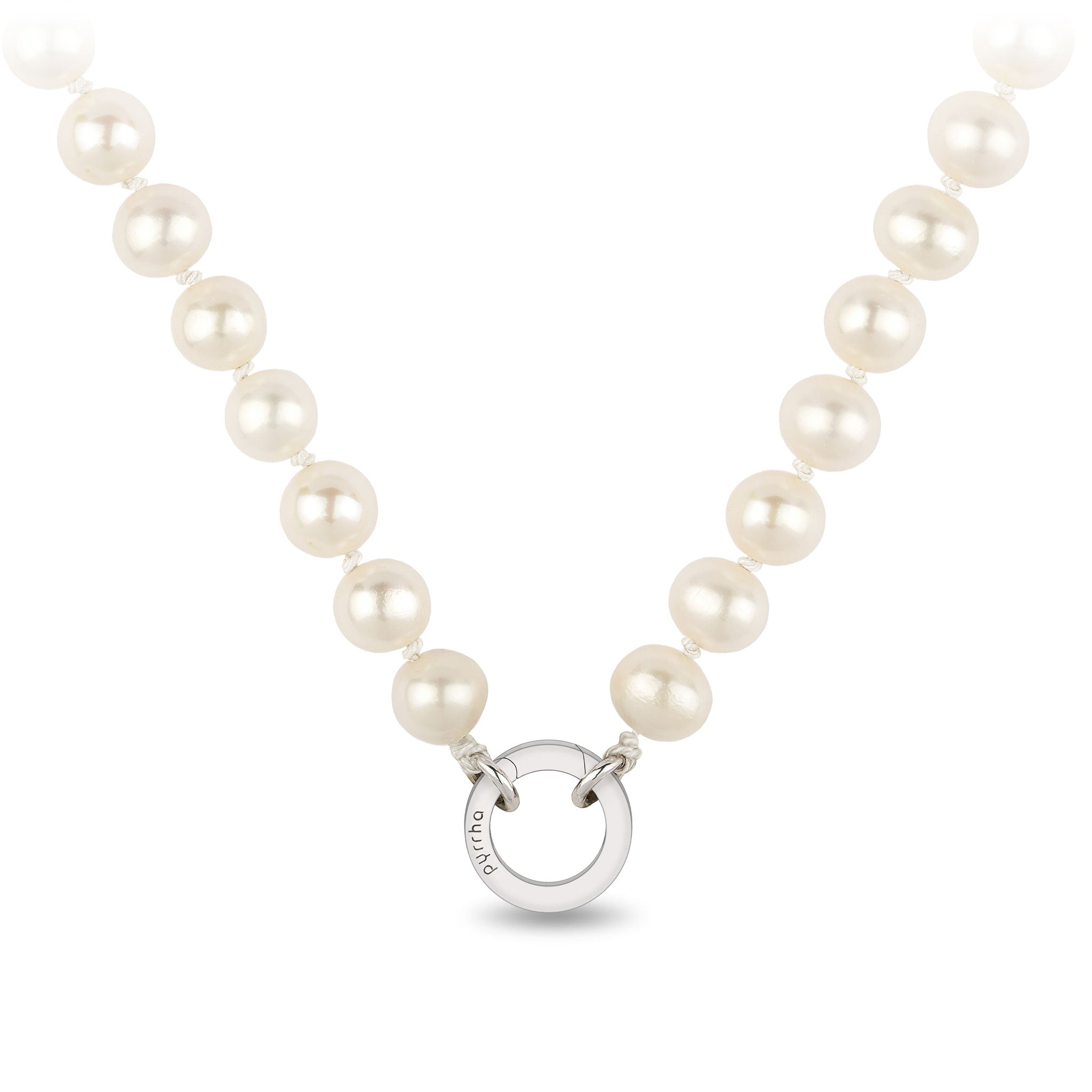 - Hand-knotted strand of on freshwater pearls with a Talisman clip