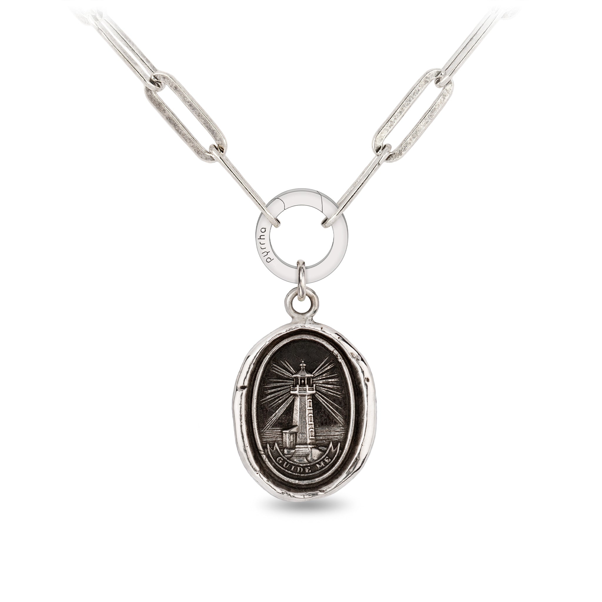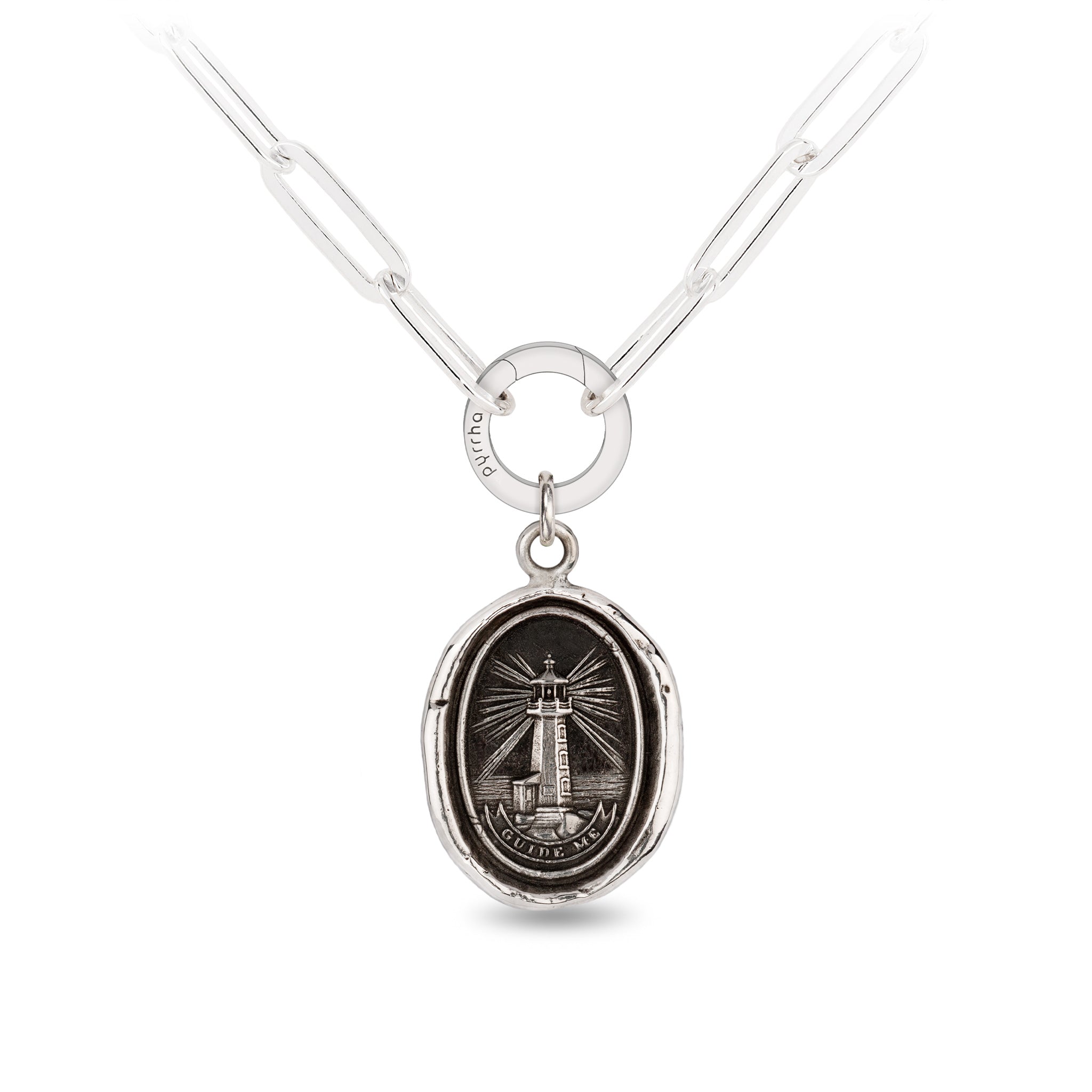 The lighthouse on this talisman symbolizes guidance. Below it, the emblematic words 'Guide Me' are a humble appeal for clarity and direction when faced with a challenging situation.