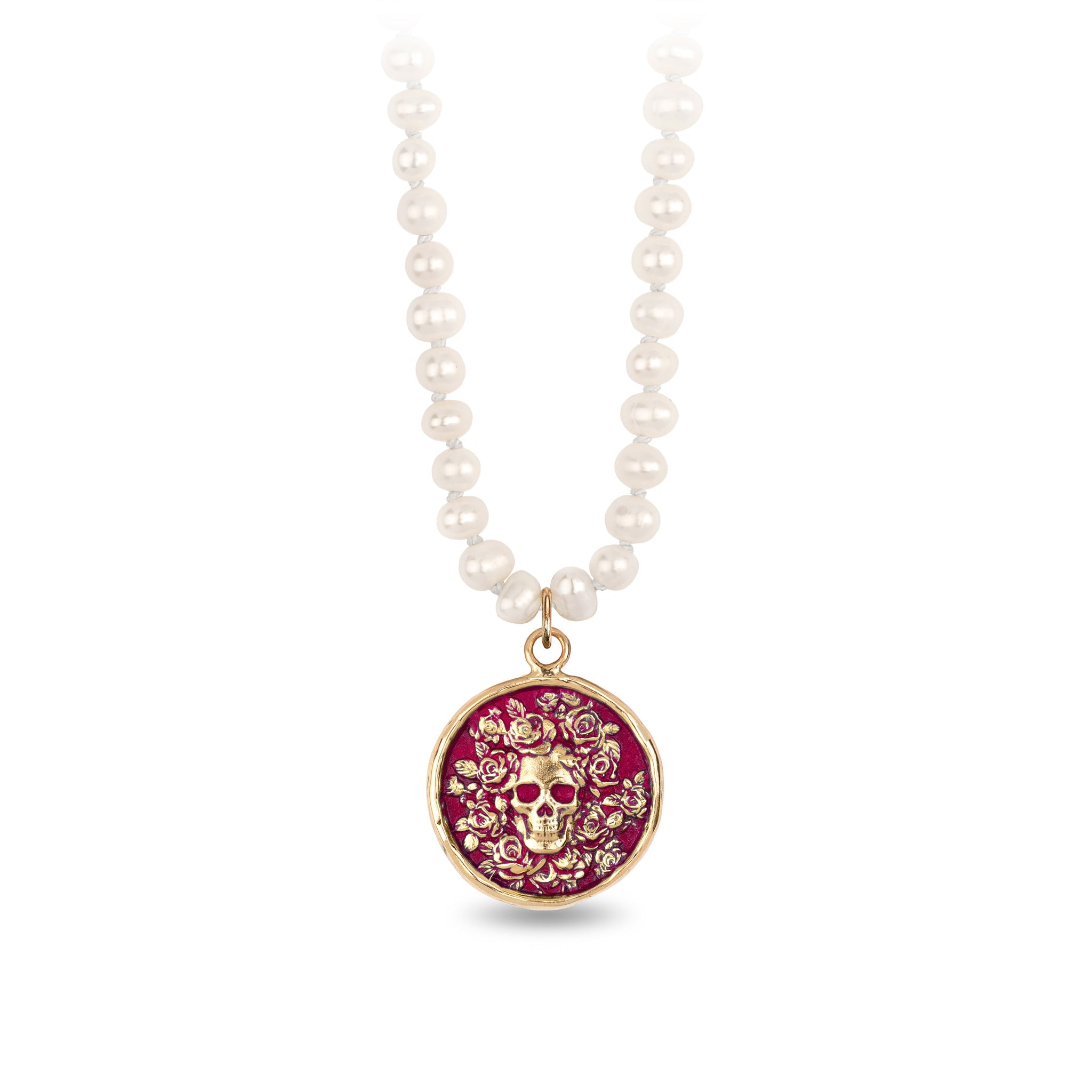 Live Every Moment 14K Gold Talisman on Knotted Freshwater Pearl Necklace - True Colors