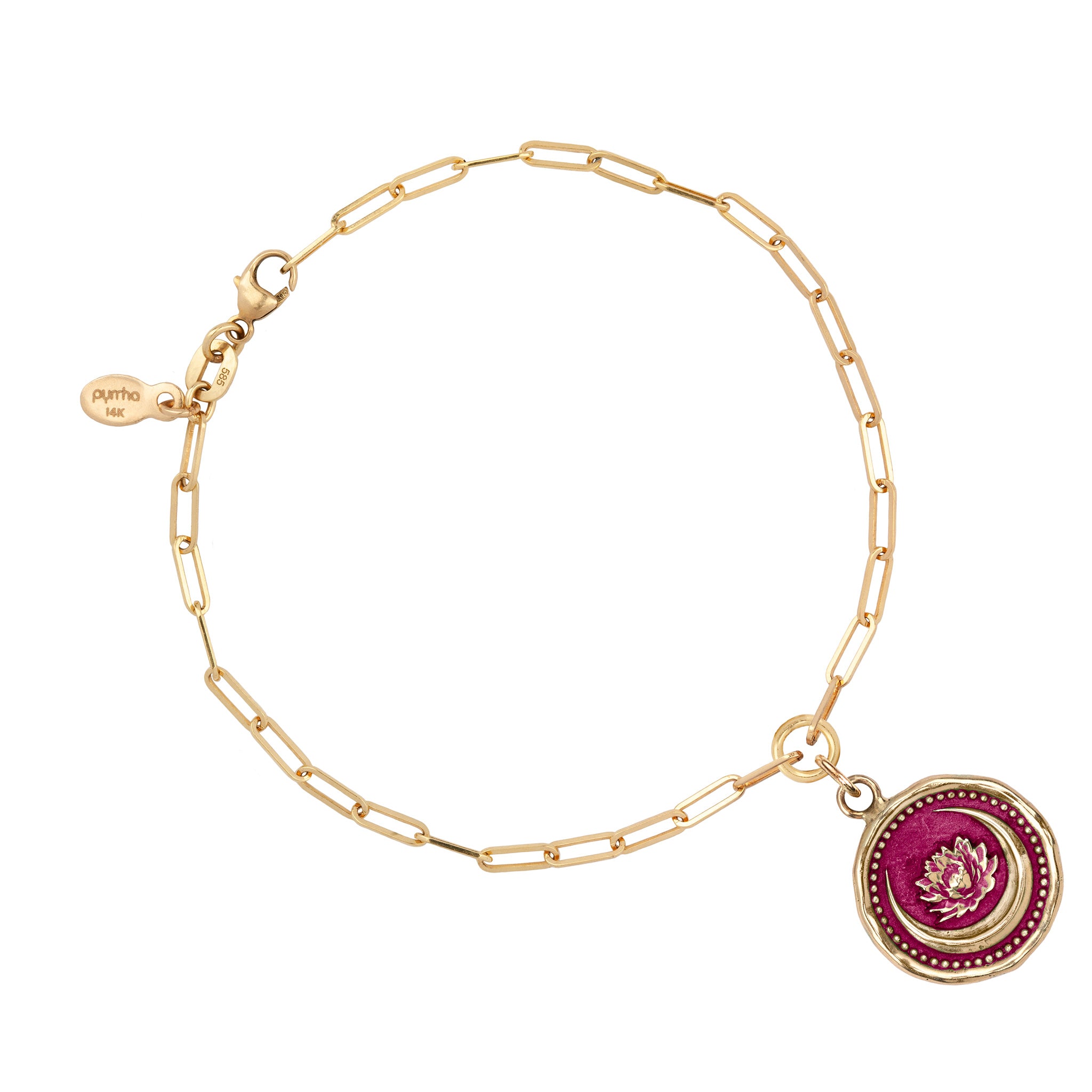 Lotus Flower 14K Gold Long Link Paperclip Chain Bracelet - True Colors