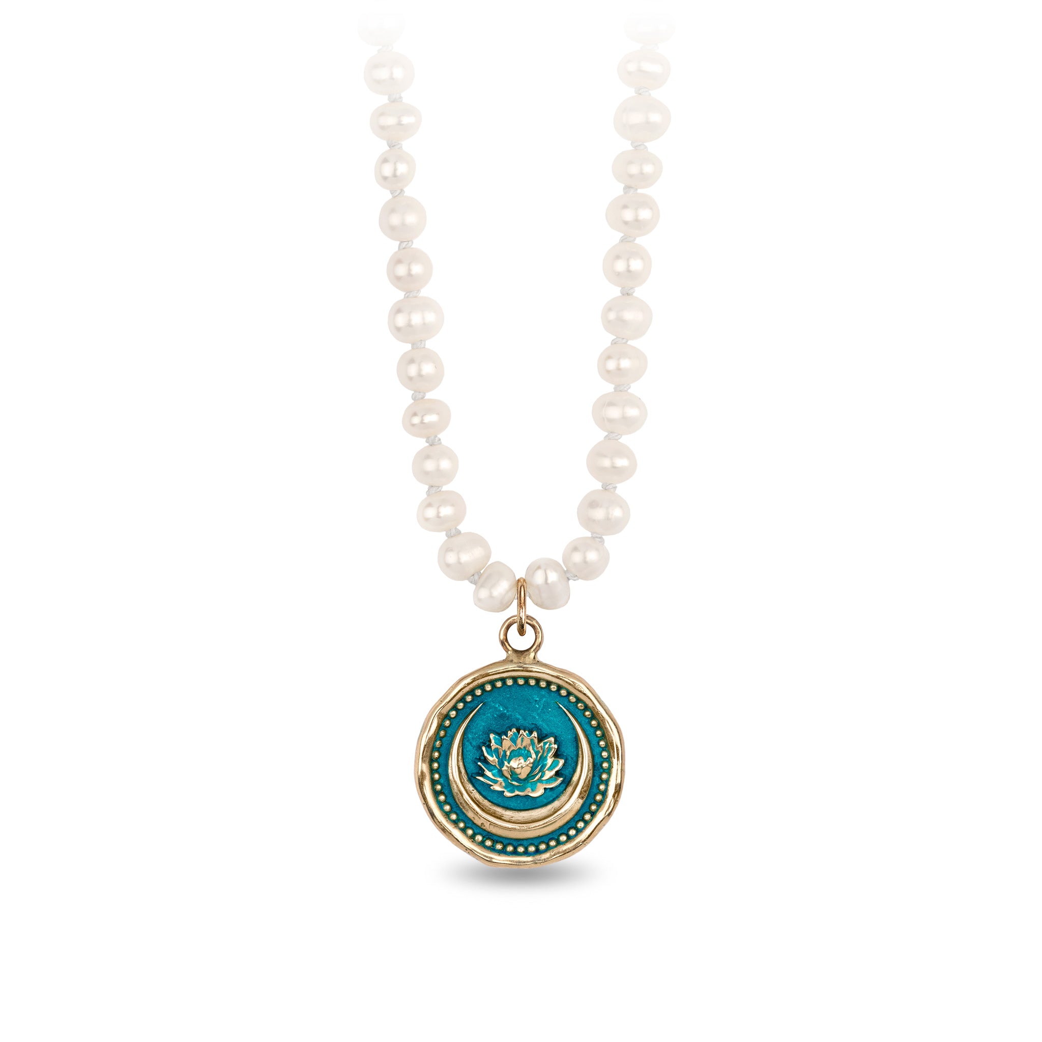Lotus Flower 14K Gold Talisman on Knotted Freshwater Pearl Necklace - True Colors