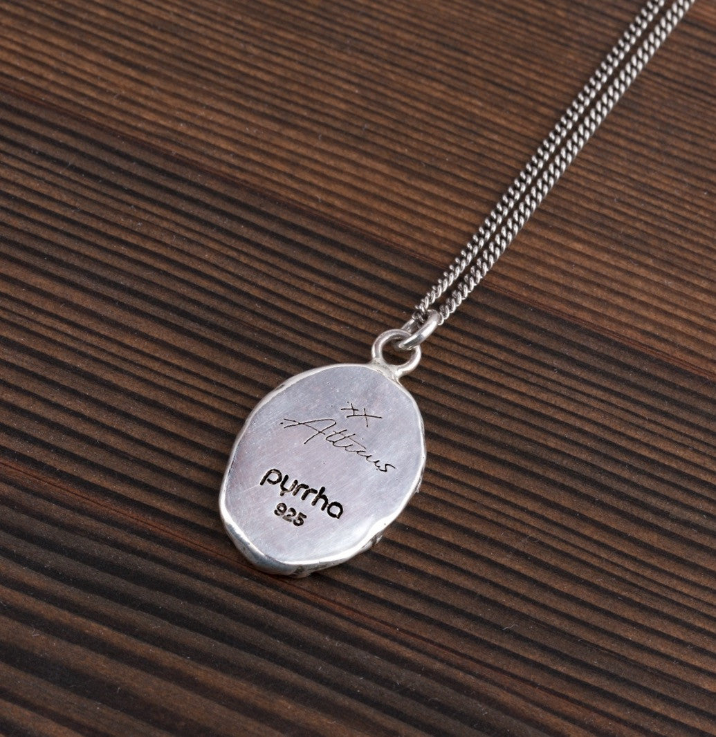 - Sterling silver or bronze talisman on a sterling silver chain