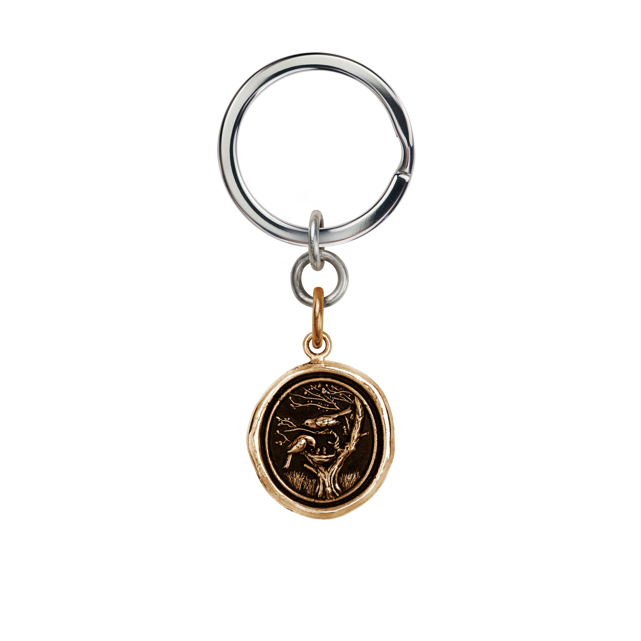 - Sterling silver or bronze talisman on a stainless steel key chain