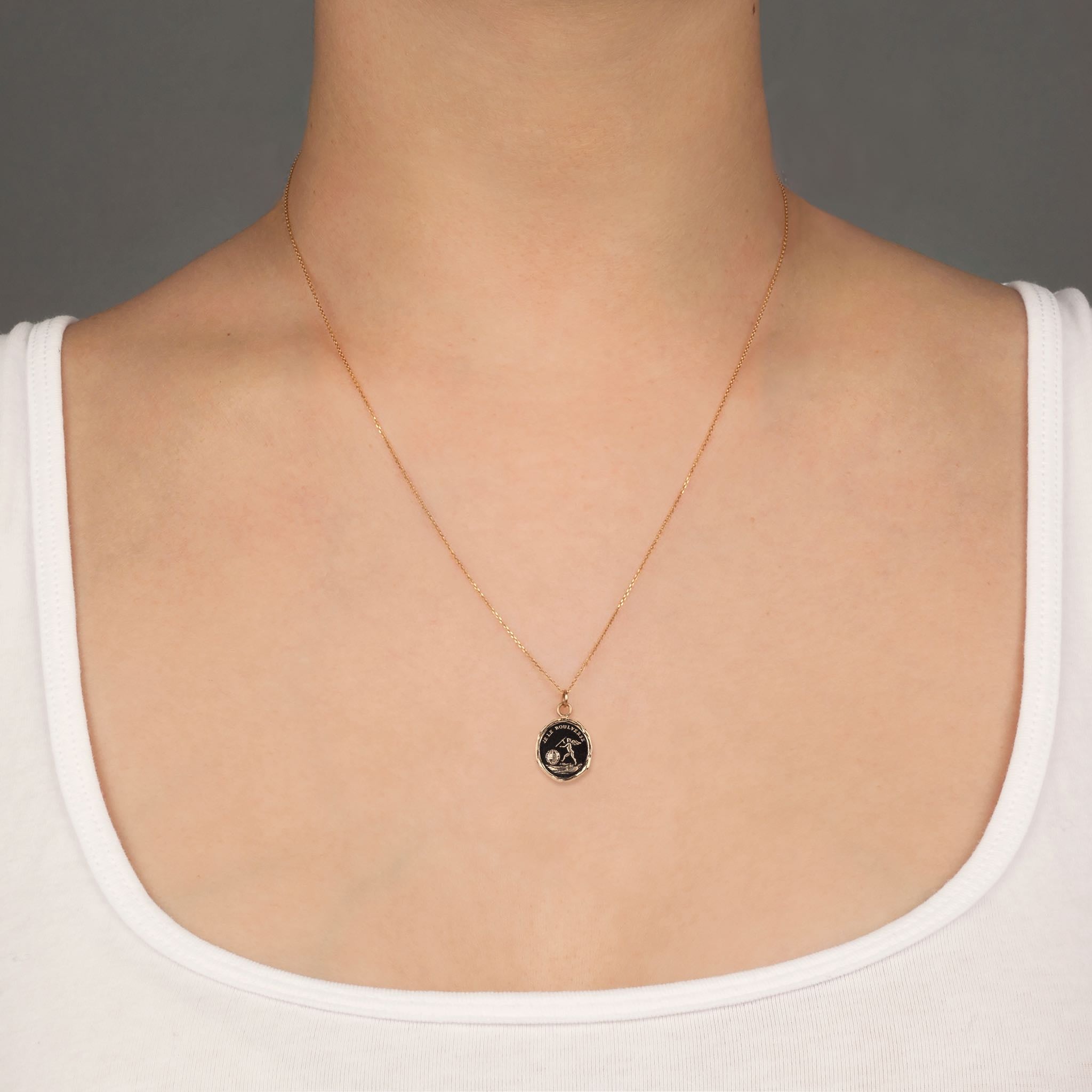 - 14k gold talisman available with or without a 14k gold or black sterling silver chain
