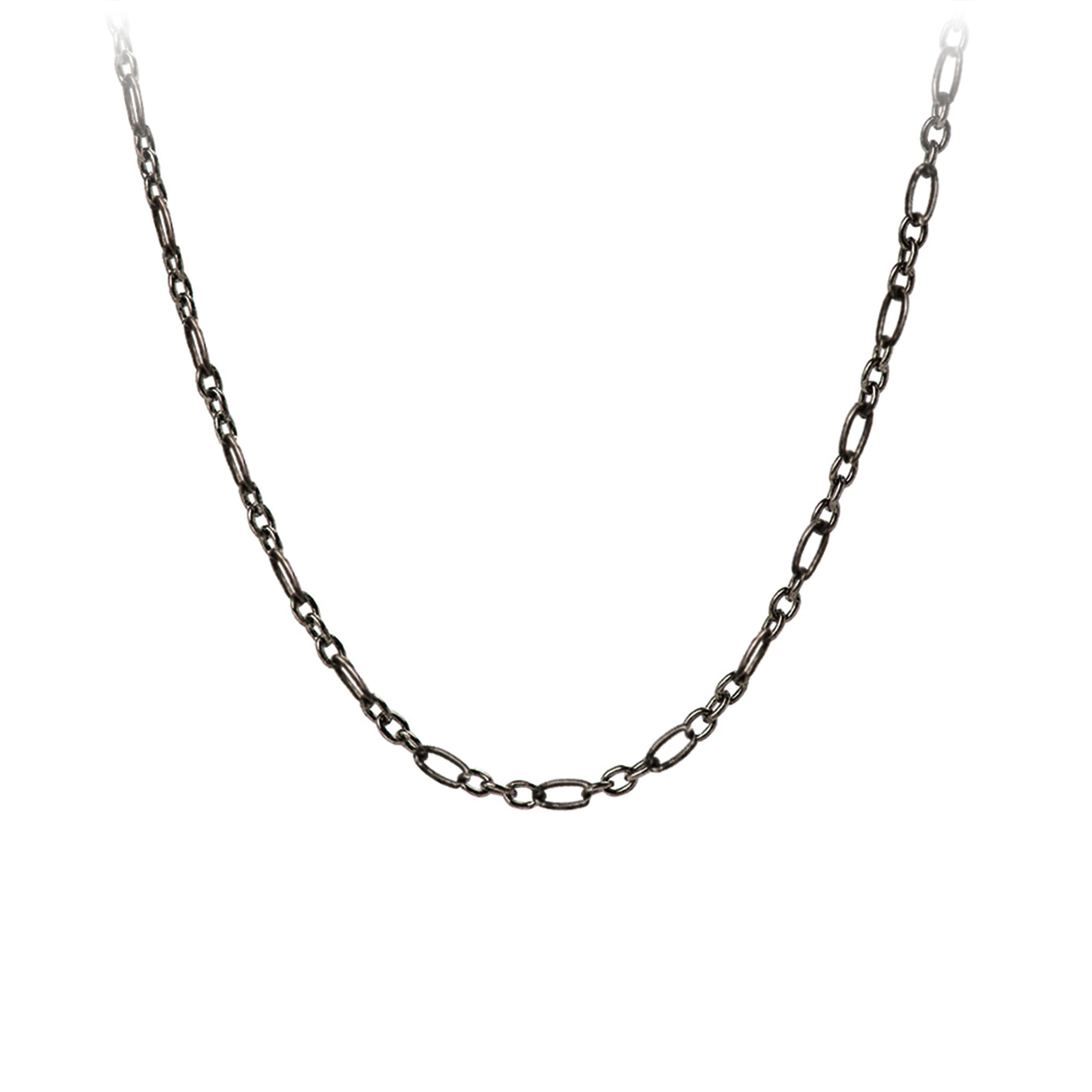 - Oxidized or black sterling silver chain with sterling silver Pyrrha branded quality tag