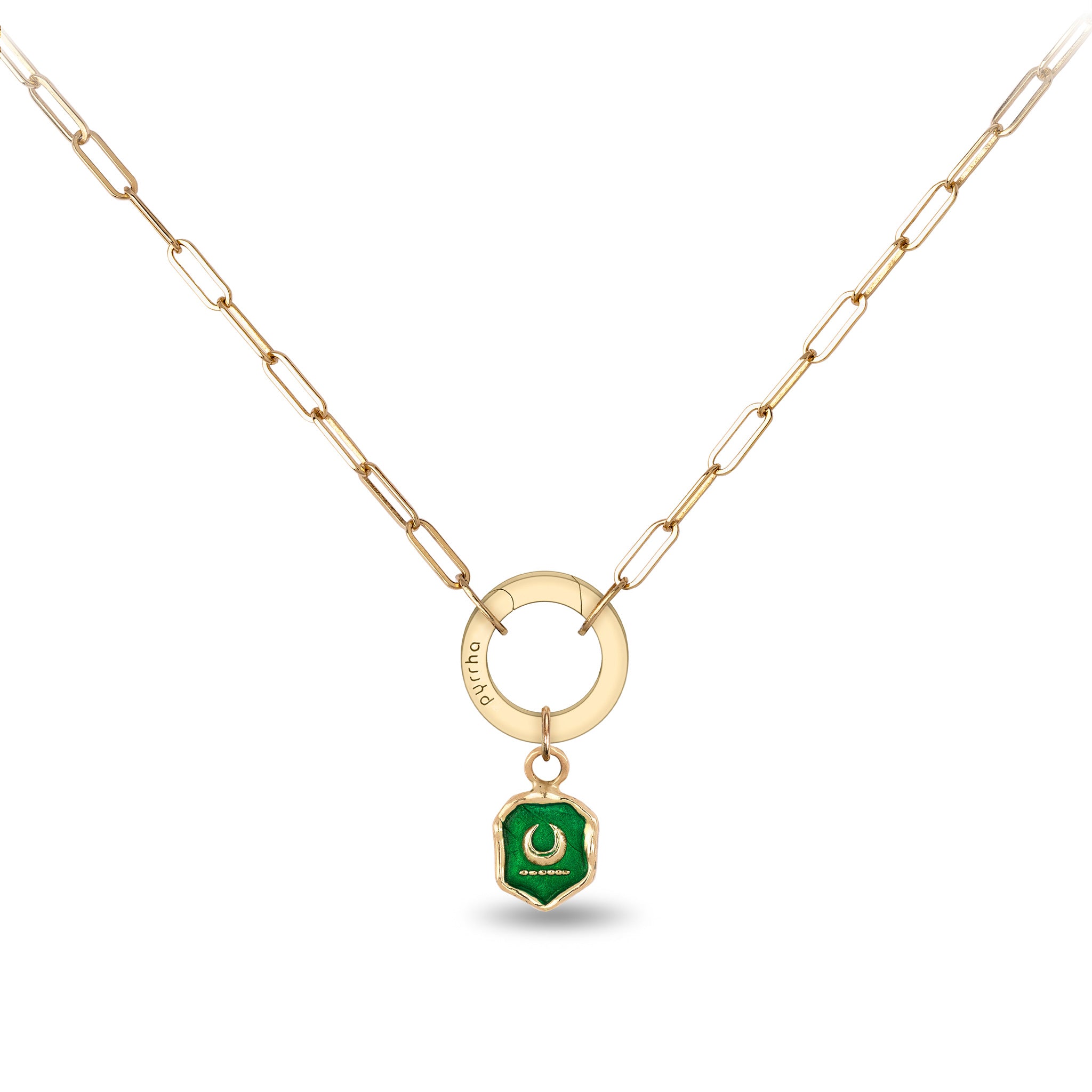 - 14k gold talisman affixed on a 14k gold paperclip chain