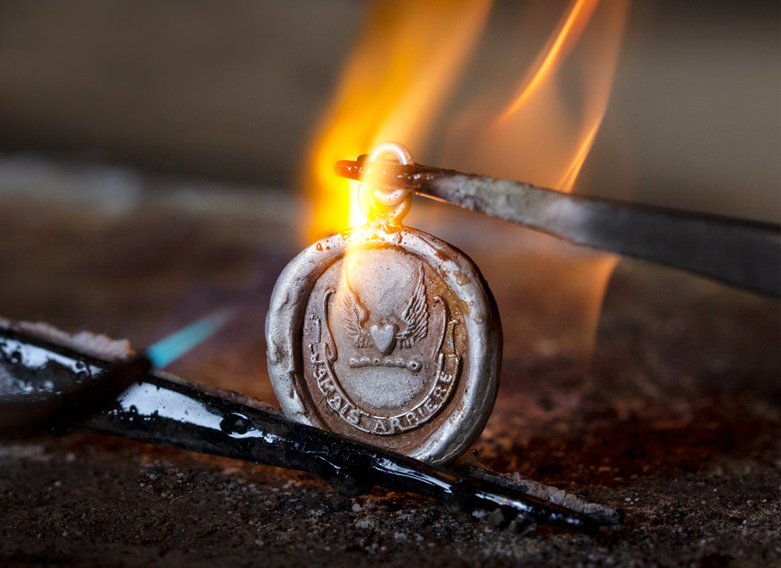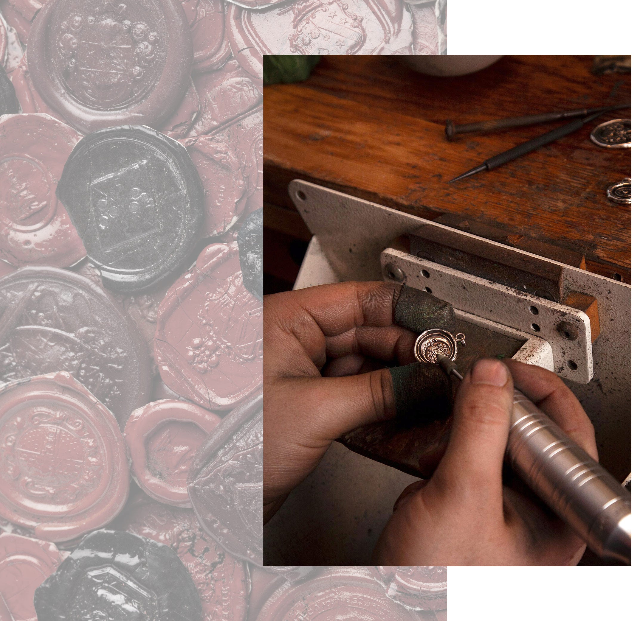Inspired by a collection of Victorian wax seals we found while digging through a box of old letters at an estate sale, our talismans were born from a desire to give the fragile antique seals new life and permanence. While we design and create all of the imagery for our pieces, we are rooted in that original connection to the past. We celebrate the natural imperfections of our talismans by incorporating original elements like cracked borders from the antique wax seals and proudly show the maker’s hand.