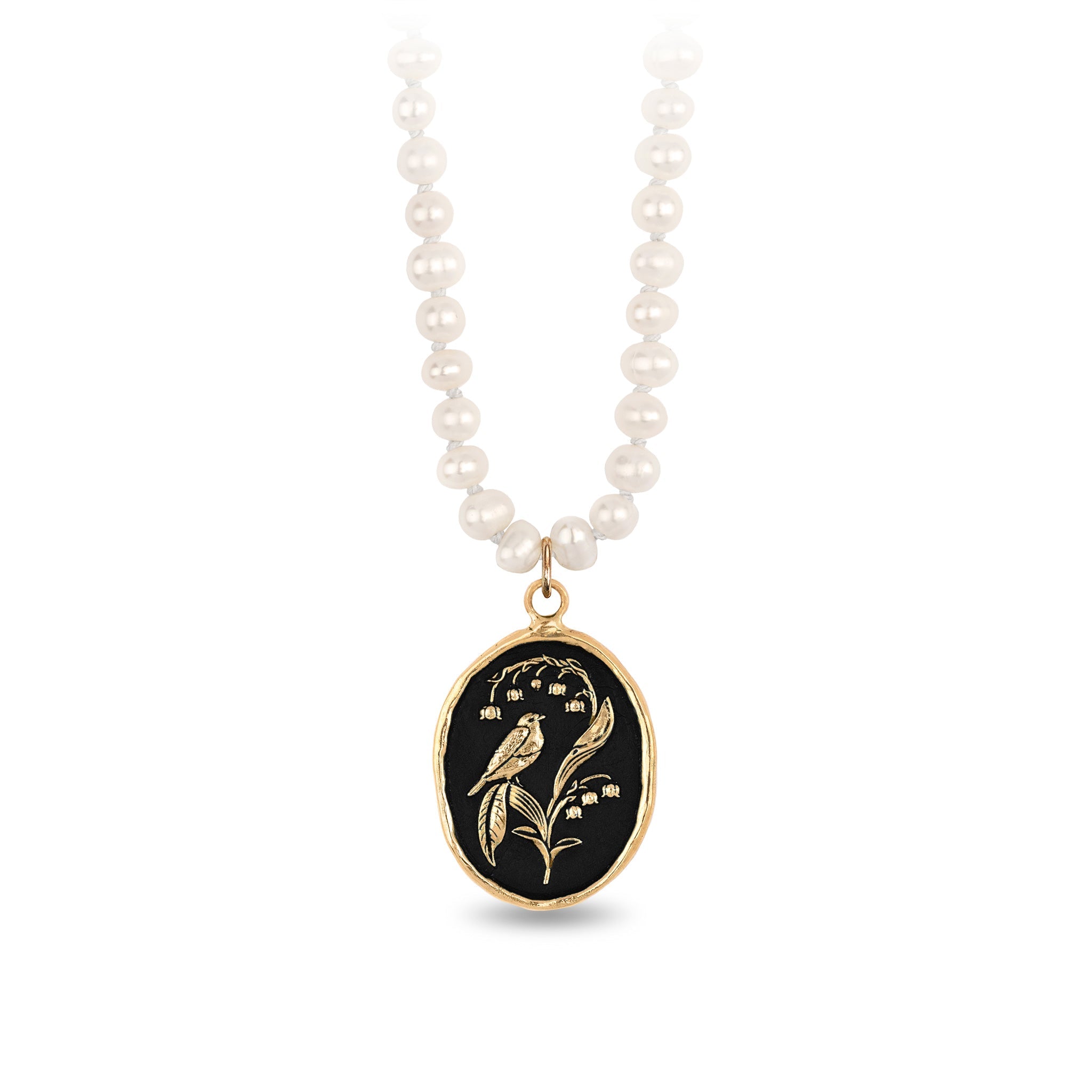 Return to Happiness 14K Gold Talisman on Knotted Freshwater Pearl Necklace