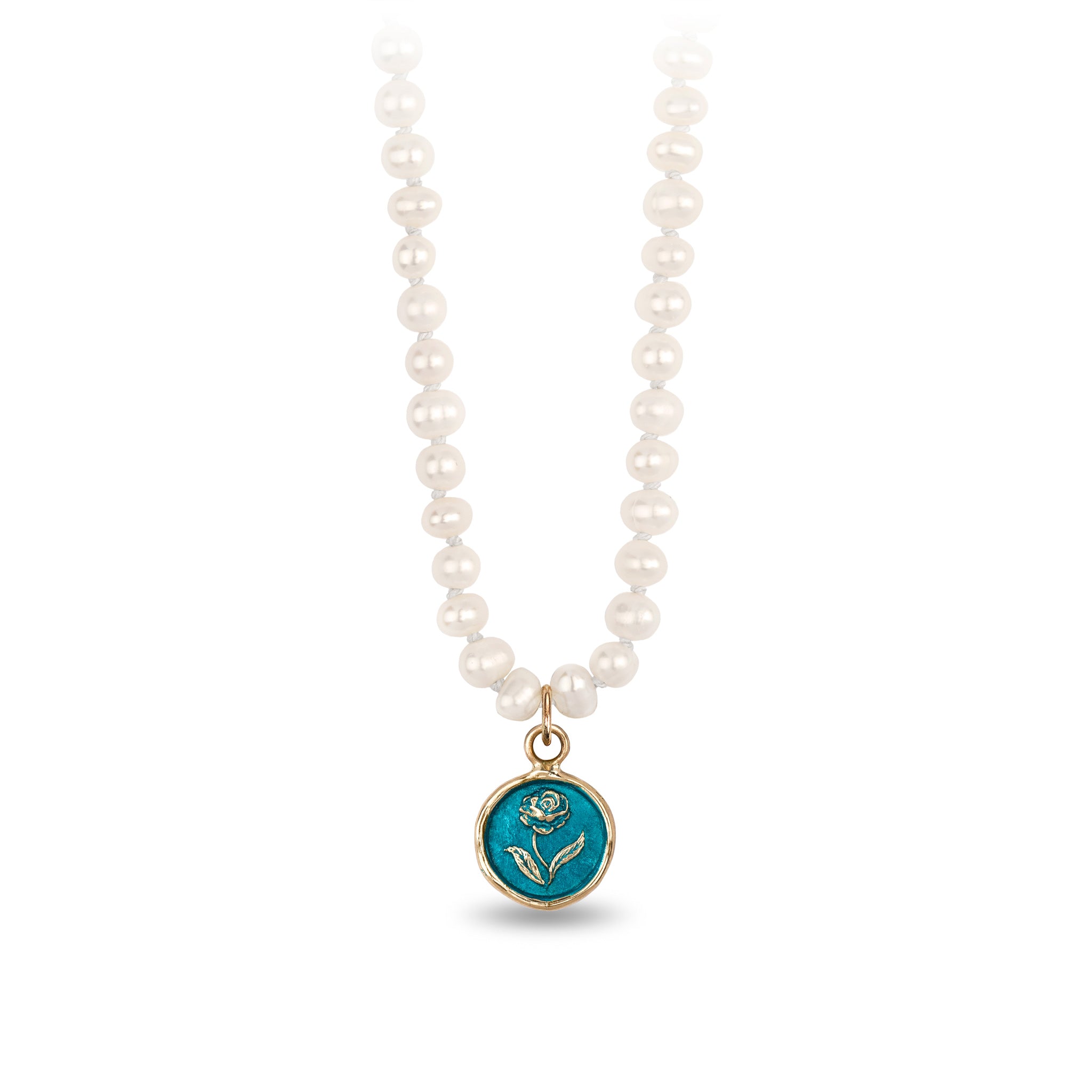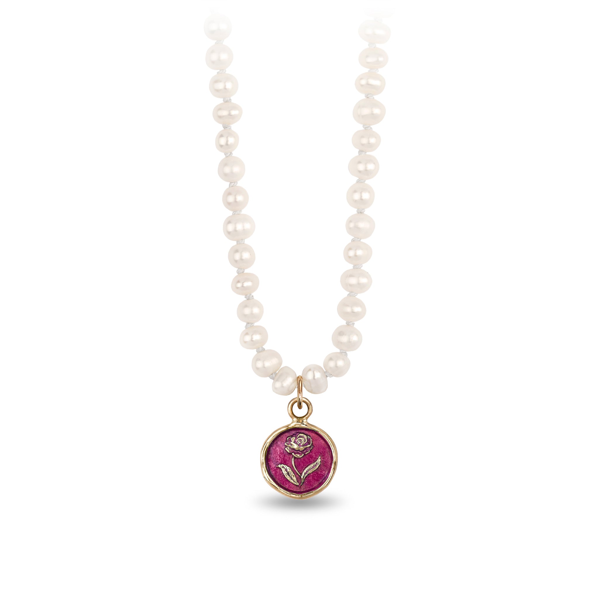Rose 14K Gold Talisman on Knotted Freshwater Pearl Necklace - True Colors