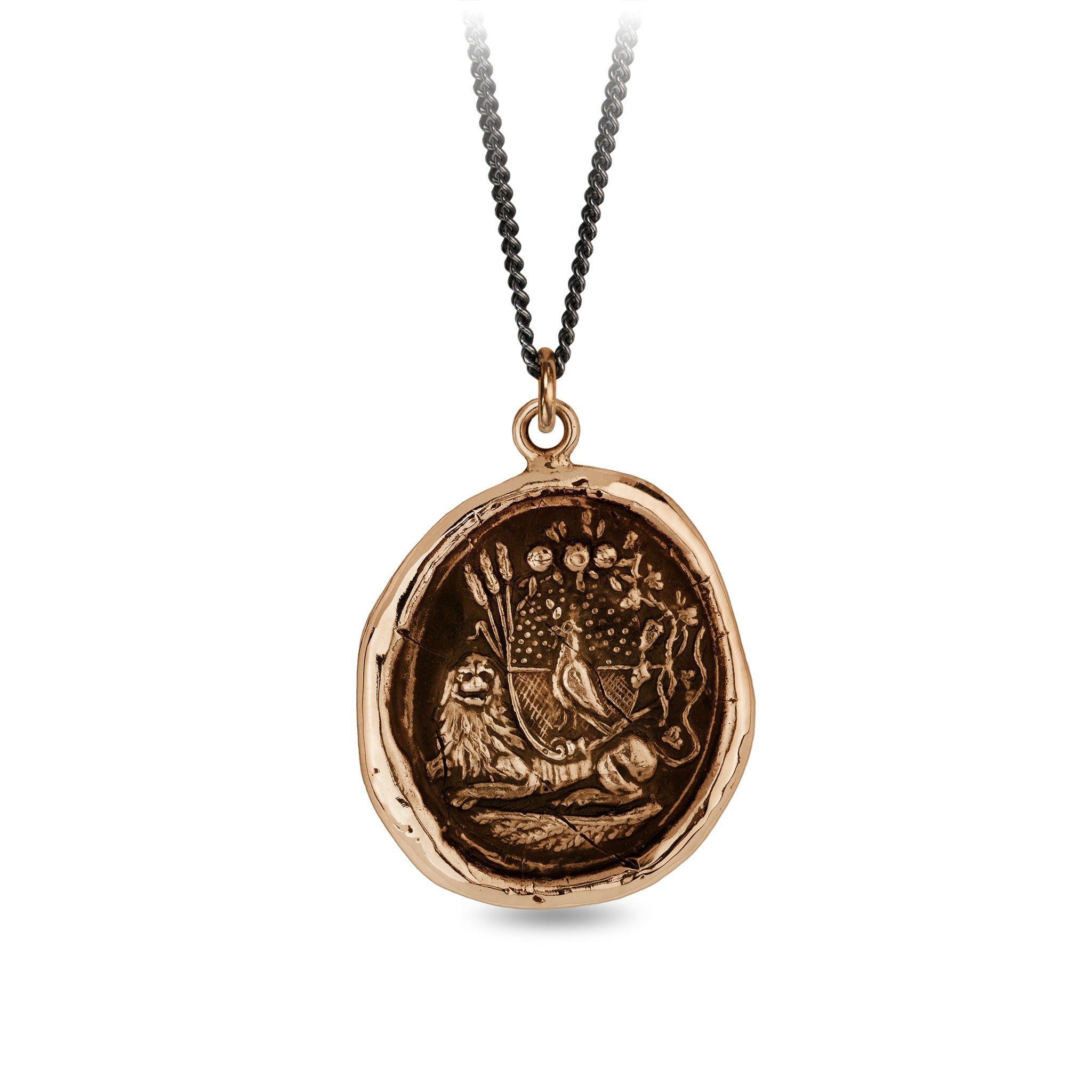The lion is a symbol of courage, while the bulrushes and dove with laurel signify peace. This talisman symbolizes the personal strength and acceptance required to have faith in one's own character.