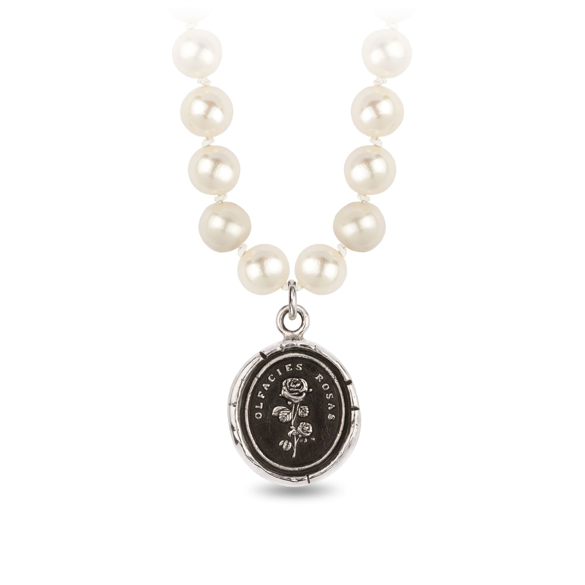This talisman reads 'Olfacies Rosas' in Latin, which means 'Smell the Roses.' It is a reminder to slow down and take time to appreciate the important daily moments that bring us joy.