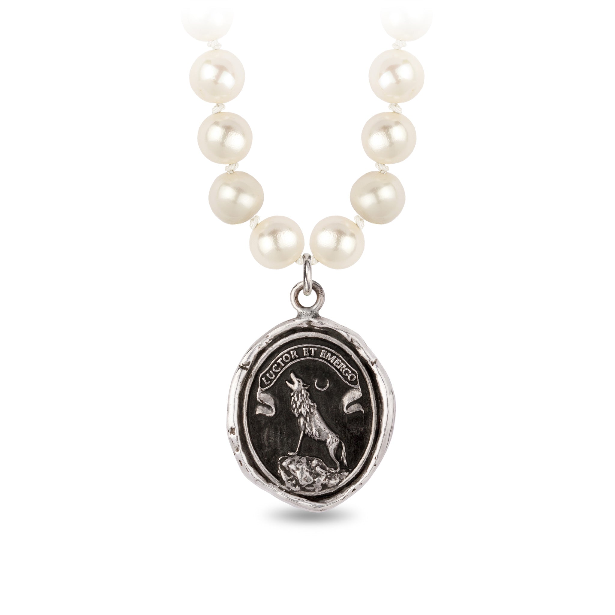 This talisman reads 'Luctor et Emergo' which is Latin for 'Struggle and Emerge.' The wolf atop a mountain symbolizes the relief, joy, and triumph of the spirit as we surmount life's challenges.