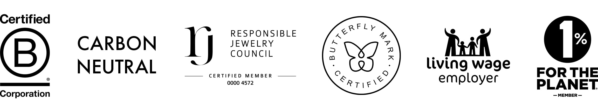 Handcrafting our jewelry locally and running a company with sustainable values is important to us and we don’t just talk the talk. Pyrrha is a B Corp, a member of the Responsible Jewellery Council (certification number 0000 4572), Butterfly Mark certified through Positive Luxury, and a member of 1% for the Planet. We cast our sustainable jewelry in 100% recycled sterling silver, 14k gold, and bronze in our Canadian Green Building Council certified Zero Carbon Vancouver studio.
