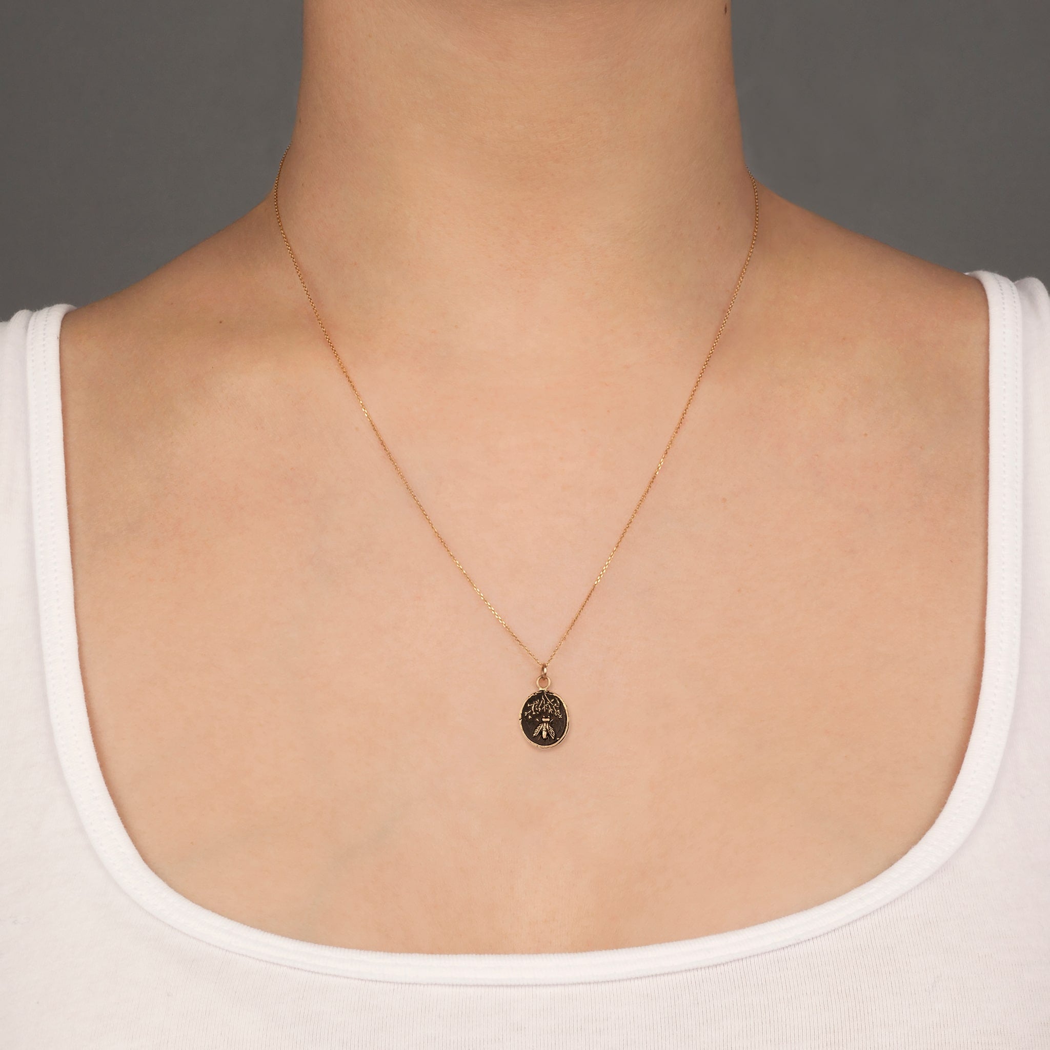 - 14k gold talisman available with or without a 14k gold or black sterling silver chain
