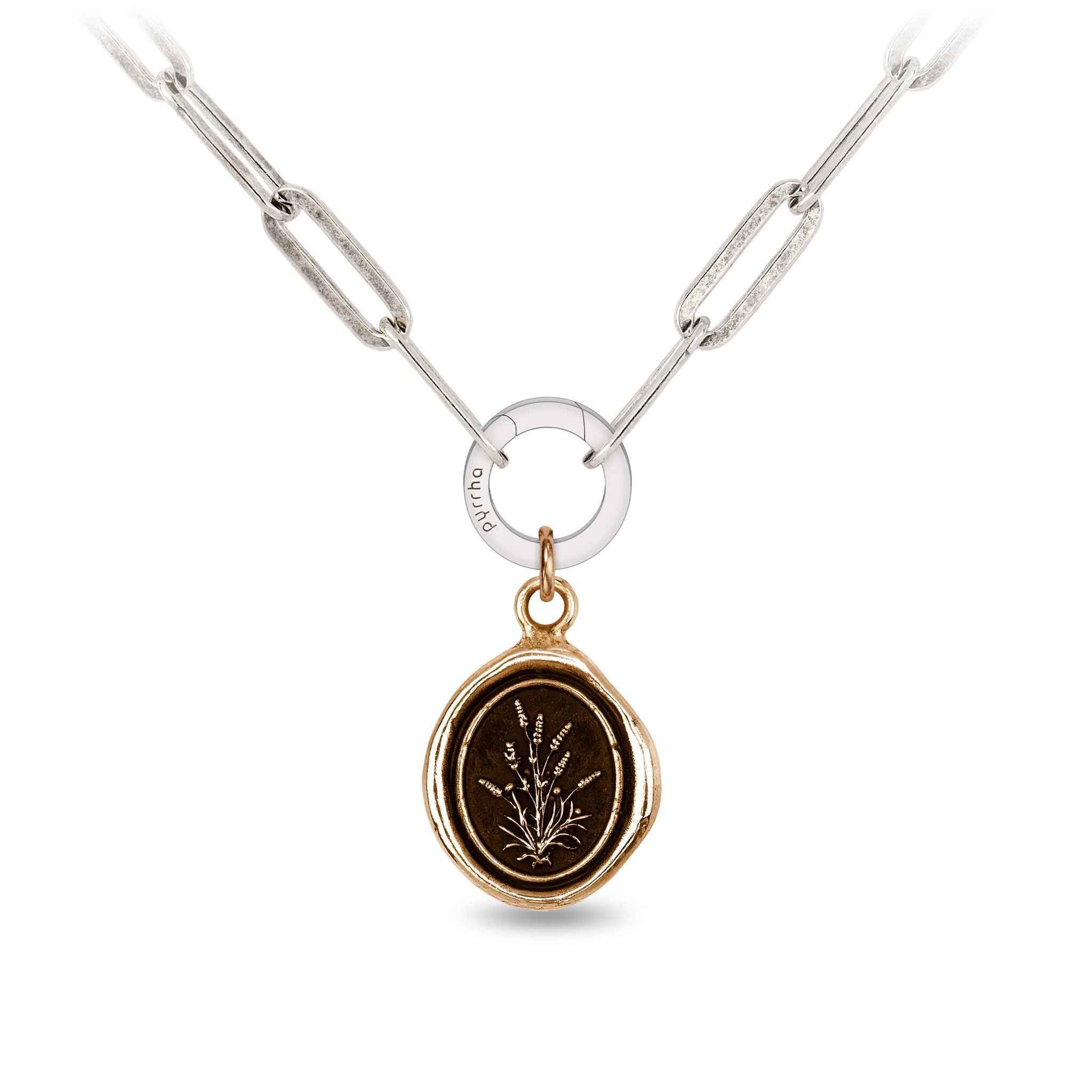 - Sterling silver or bronze talisman on a sterling silver chain with a Talisman clip