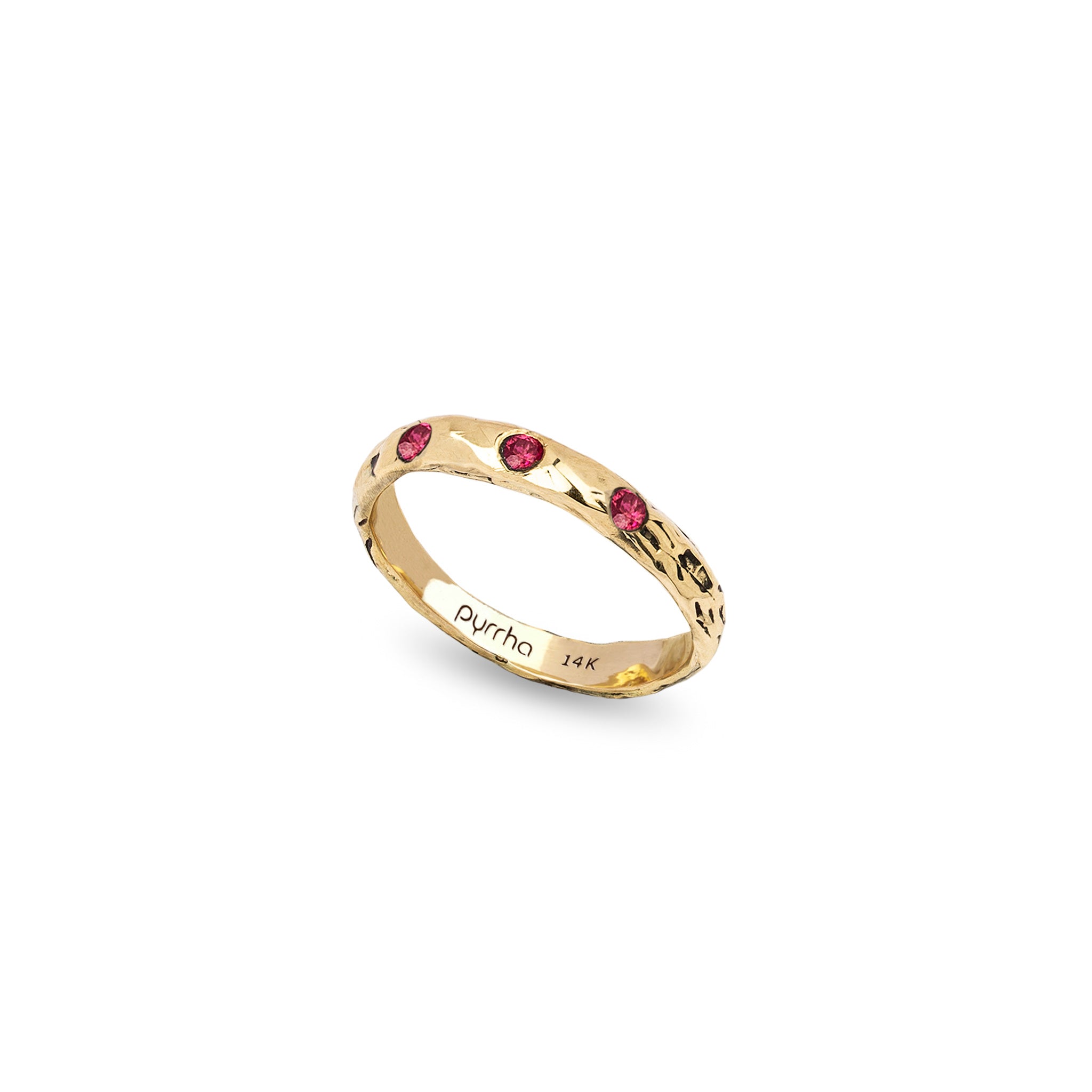 - Textured 14k gold band ring set with precious stone