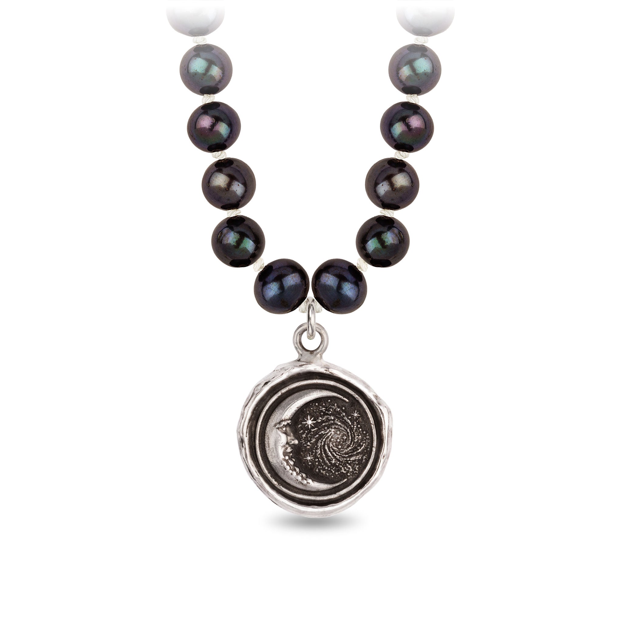 Trust the Universe Freshwater Pearl Necklace - Peacock Black