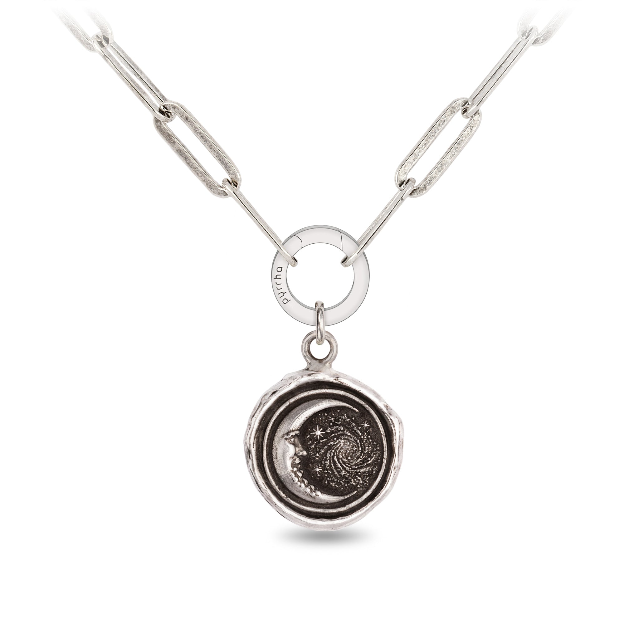 The moon and stars on this talisman remind us to trust in something bigger than ourselves. When we give up control and surrender to what is, we can more clearly see a path forward.